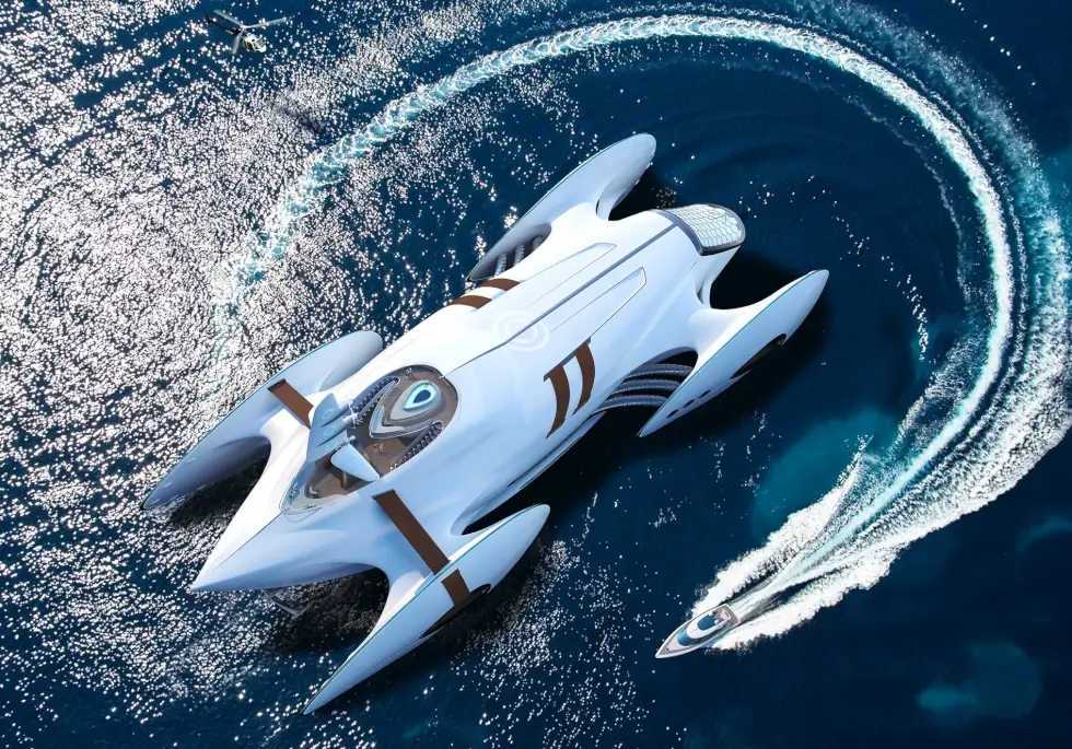It’s already quite common to see seafaring platforms draw inspiration from the finest automotive examples. However, this catamaran pushes the envelope on what’s possible with the aid of cutting-edge design software, materials, and manufacturing processes.