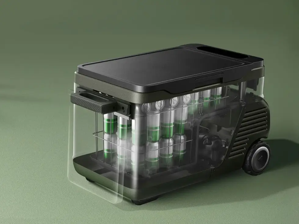 Instead, it uses a built-in compressor that runs on a detachable 299Wh battery that provides efficient and long-lasting cooling power at 39°F (4°C).  A 43L cooler chills for 35.8 hours and 53L for 27 hours. You can also adjust the temperature from -4° – 68°F (-20° – 20°C).