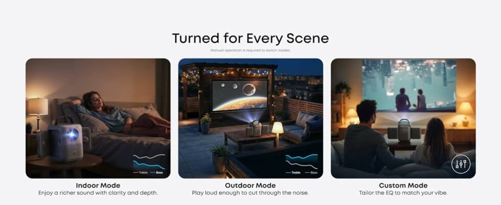 Depending on a room’s layout or outdoor setup, it’s possible to configure both visual and acoustic output accordingly. “Enjoy lifelike details with TÜV‑certified 380 ANSI lumens and 1080p Full HD resolution that make every movie night pop,” writes Anker. Just sit back and relax as the automated Smart Instant Setup (IEA 3.0) handles everything.