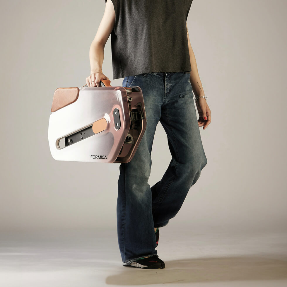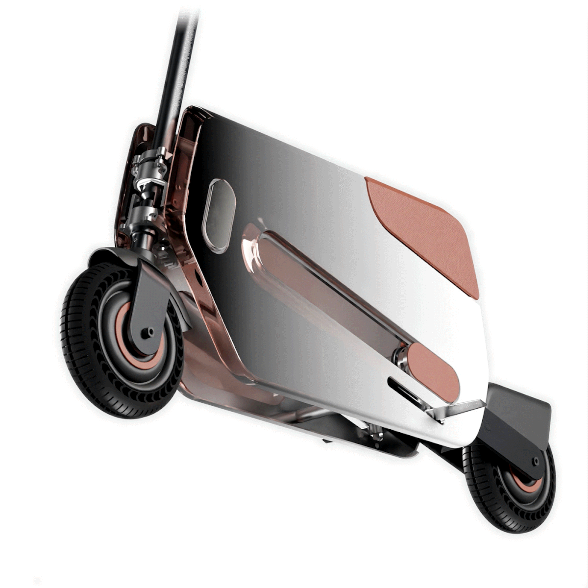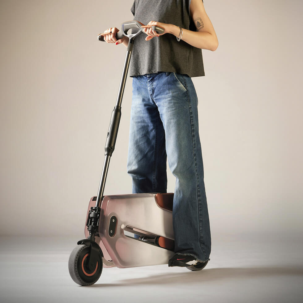 We can’t help but agree, given the ANT concept can seamlessly convert from a standard-size e-scooter into an object the size of a briefcase. Instead of a regular headtube, it uses hinges and a sliding mechanism to store its components when not in use. We also like how the handlebar locks into place and forms the carrying handle.