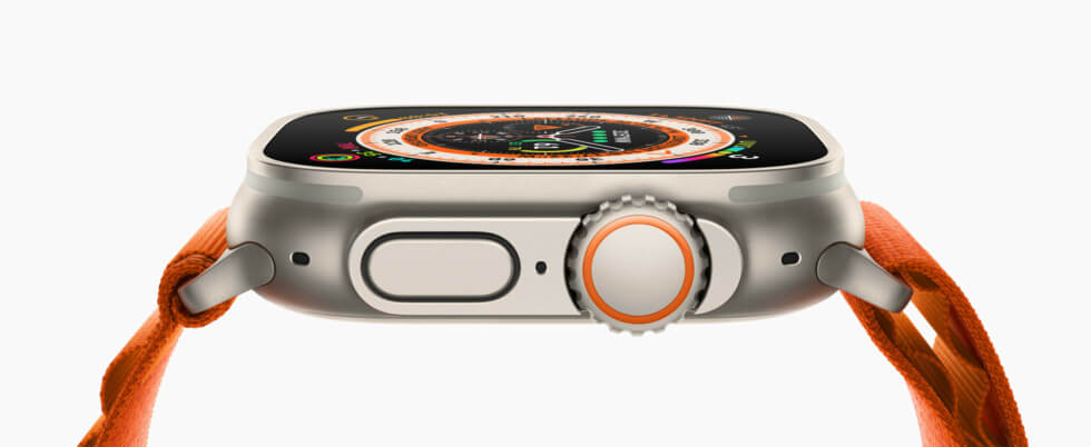 The display is also larger and sits under a sapphire crystal. The titanium case flaunts a revamped digital crown and a brand-new customizable action button. A section that holds the side button is raised to form crown guards. Moreover, the bezel edges are slightly higher to protect the display from accidental impacts.