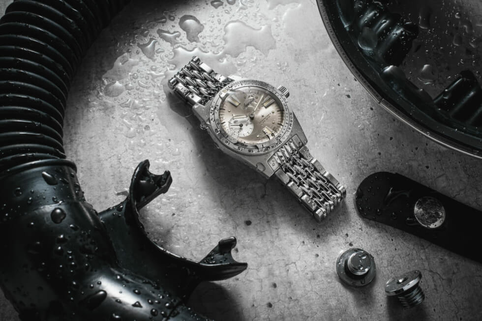 Low-light visibility comes from the Super-LumiNova application on the hands and indices. Ticking within the Deepstar II is a Swiss Sellita SW290 self-winding movement with a 38-hour power reserve. Instead of a typical three-hand function, a small seconds sub-dial is set at 9 o’clock.