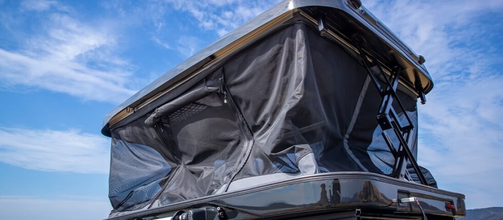 Electronics are hooked up via Anderson connectors to power the lights, fans, and actuators of its ARB Smartfold hinge technology. The Altitude is constructed out of fiberglass and a lightweight aluminum frame. Its aerodynamic form factor reduces wind noises and drag. If the standard package is not enough, optional accessories are available to kit out your rooftop tent.
