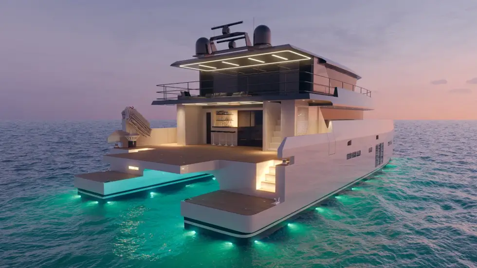 Archipelago Expedition Yachts is building a catamaran capable of longer journeys, faster cruising speeds, seaworthiness even in the roughest conditions, and luxurious comfort throughout its volumes. The 80 boasts a payload capacity of 16 tons — more than enough to hold amphibious vehicles, helicopters, sailing boats, and submersibles.