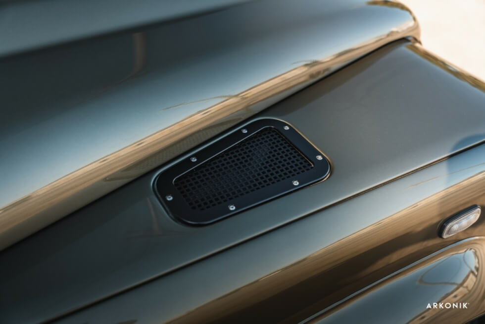 To ensure peak performance, the FU Dog welcomes a brand-new engine and transmission. Along with its fresh powertrain, Arkonik includes the bulkhead, switchgear, wiring loom, brake lines, rear drums, front discs, fuel system, air conditioning, windows, seals, and steering system. Meanwhile, the chassis has been etched and raptor-coated to enhance corrosion resistance.