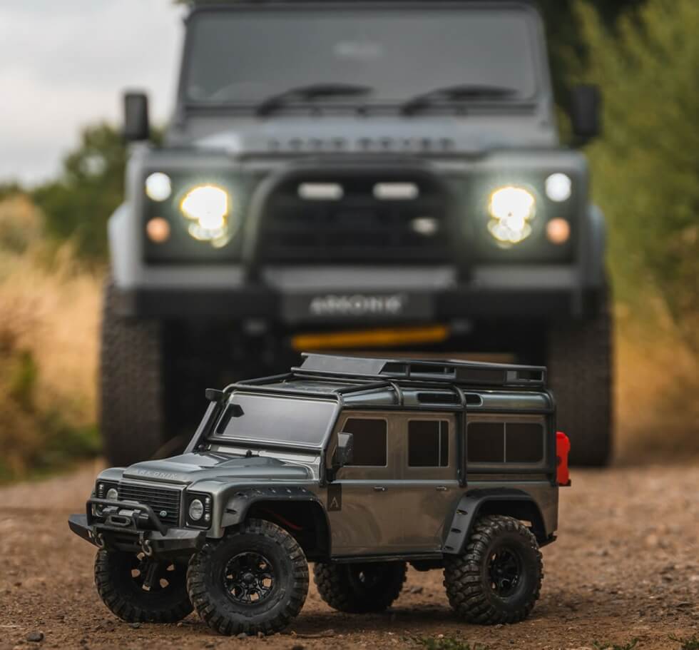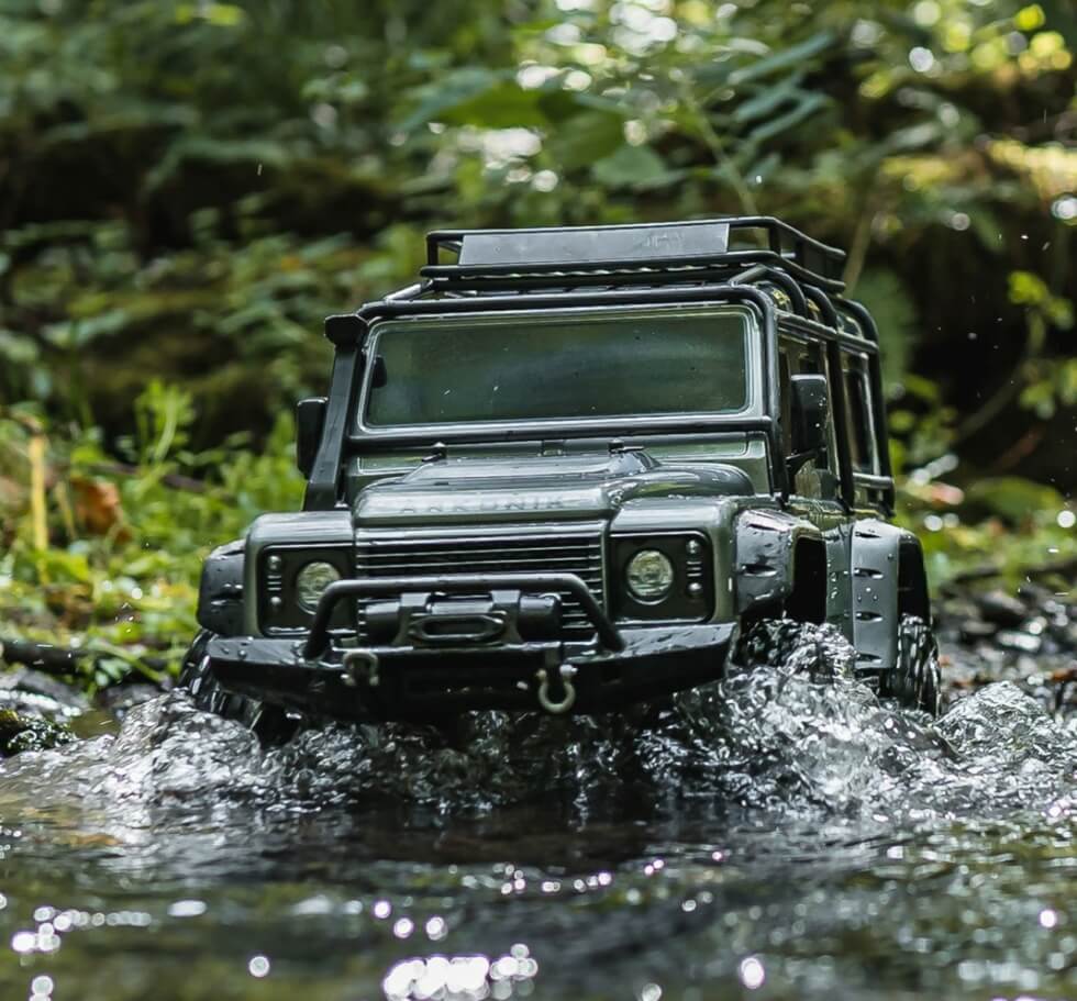 Other noteworthy elements include aluminum scale shocks, heavy-duty steel frame rails, underbody protection, and an adjustable wheelbase. Portal axles also help with ground clearance just like the real deal. The Arkonik x Traxxas 1:10 R/C Land Rover Defender boasts impressive waterproofing. Now you can recreate diverse wet/dry off-road courses at home and take the R/C SUV for a spin.