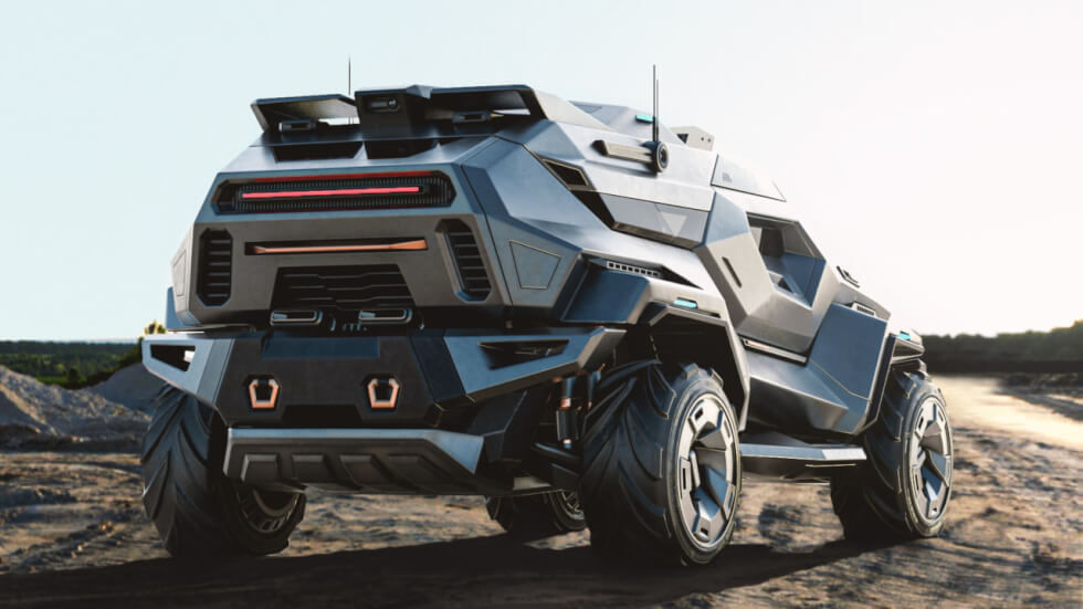 As the name implies, it flaunts visibly thick armor plating that would brush off almost any type of attack. After featuring real-life automobiles with military-grade protection, we believe that this concept has all the basics down. All critical sections appear to be properly shielded and should likely even survive blasts from explosives.