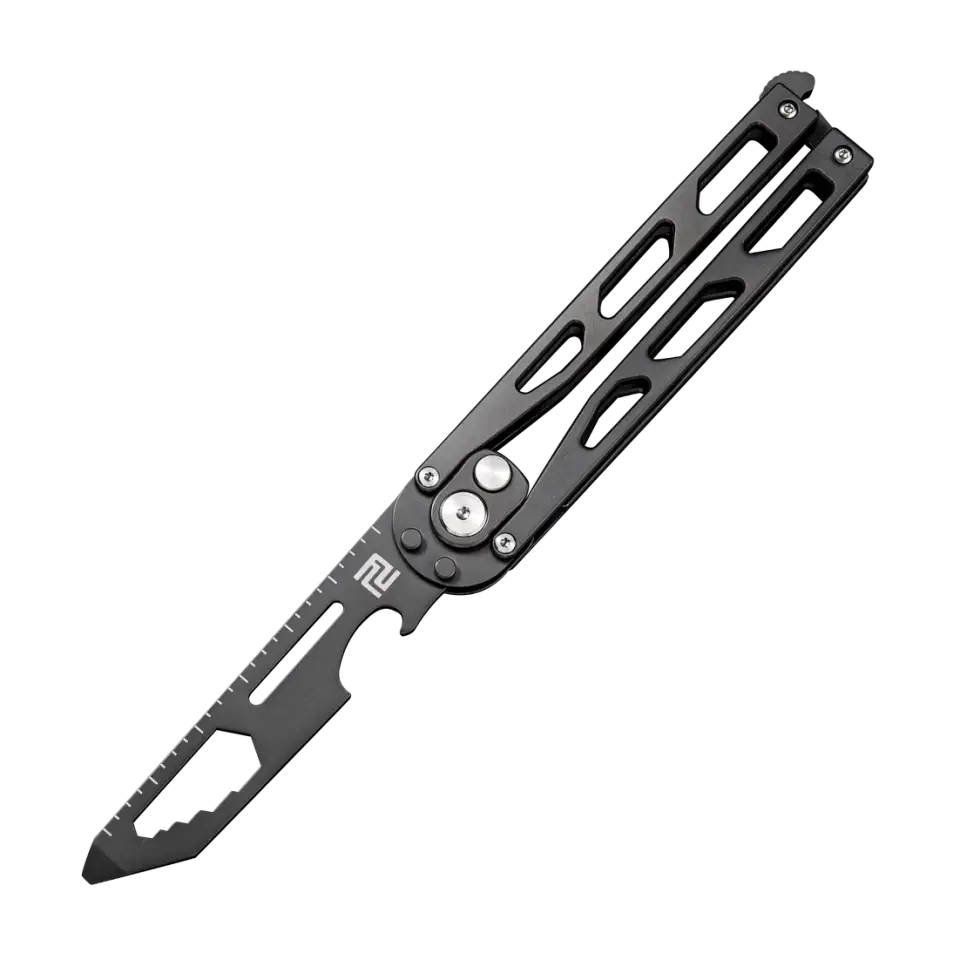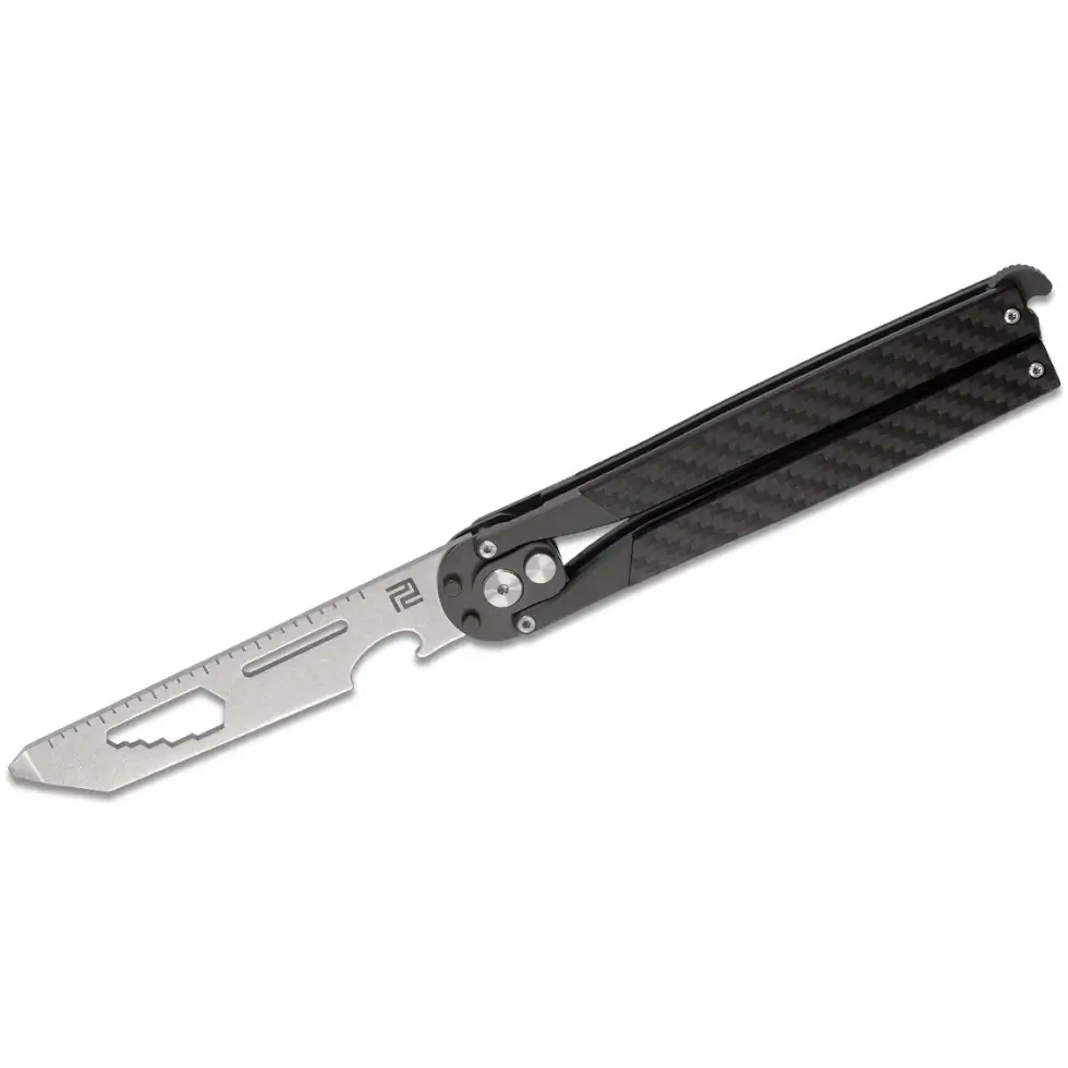 Moreover, on the spine of the blade is a three-inch ruler and you can even hold the whole knife securely and use it as a pry tool. But the beauty of Artisan Cutlery’s Small Kinetic Tool is the integration of an automatic knife. If you want swift and quick action, then simply press on the release button at the front to release the blade.
