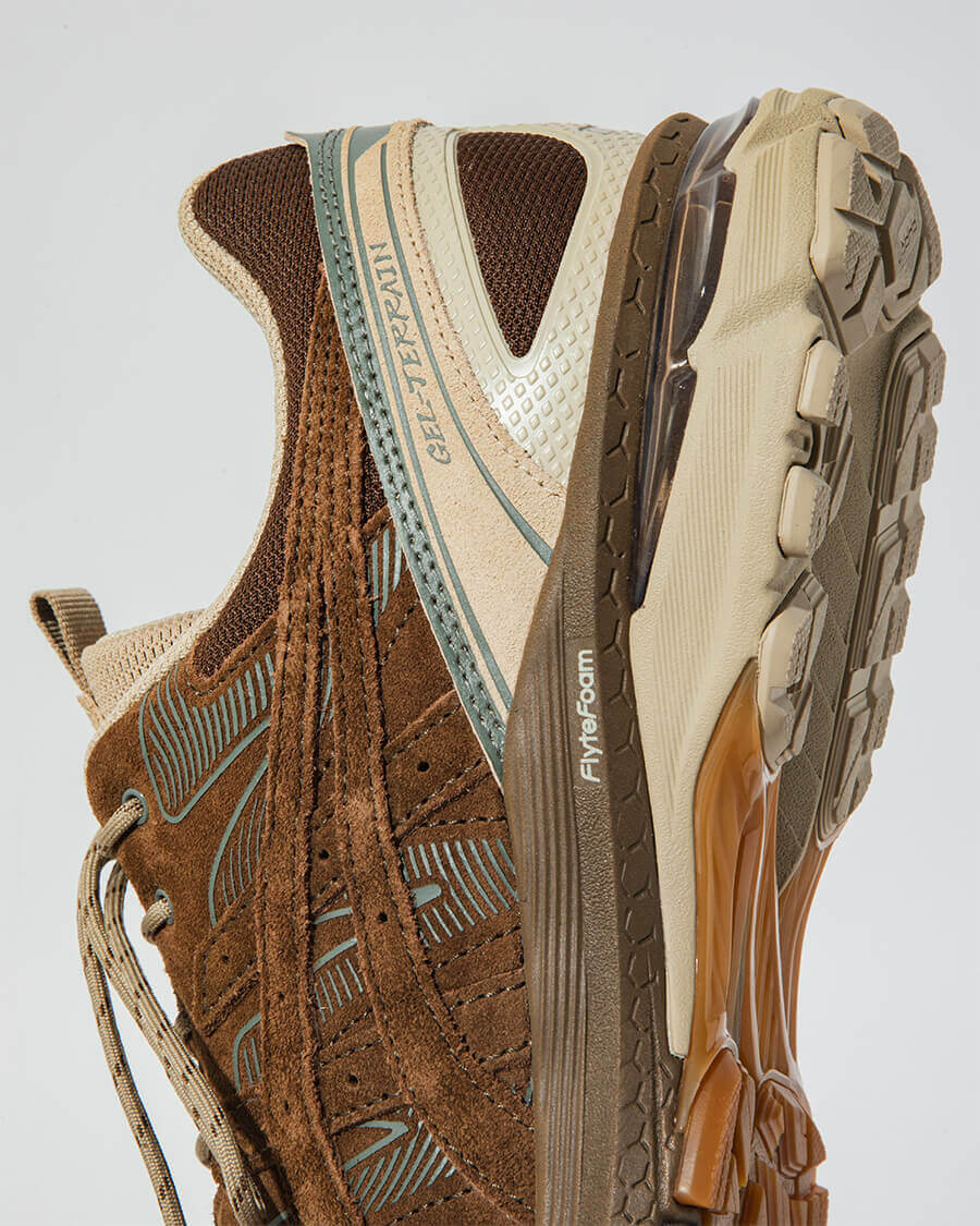 ASICS is calling it the GEL-TERRAIN GTX for a reason and this exclusive Brown Storm colorway is ready for the trails. At first glance, the tonal earthy shades are curated to deliver a subtle contrast. This allows the textures, signatures, and other details to remain aesthetically distinct.