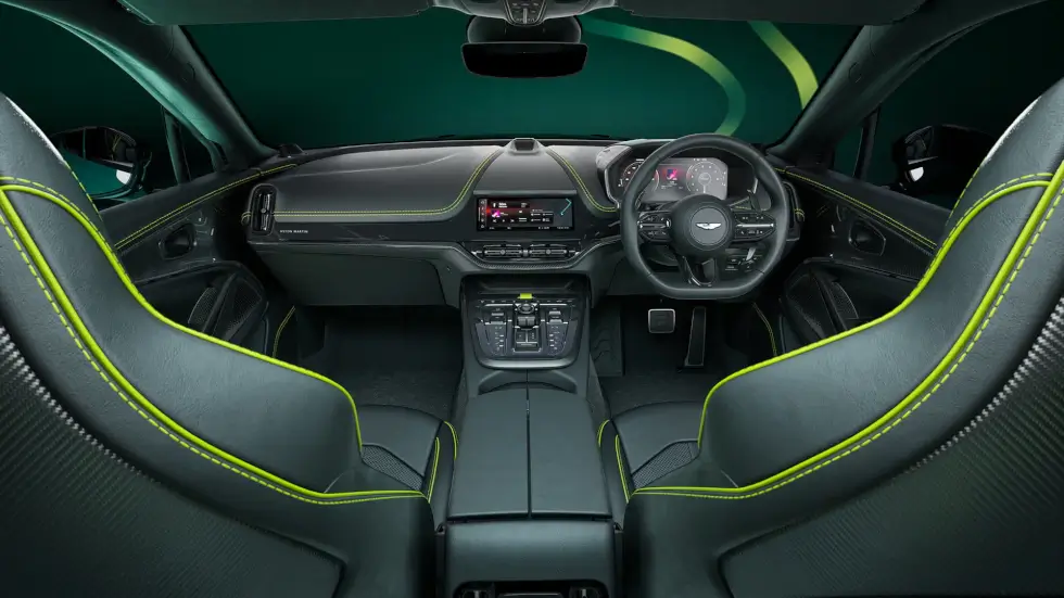 Pick from Neutron White, Onyx Black, and Podium Green. Accents in Trophy Silver or AMR Lime add a vibrant contrast to its aesthetics. We believe most will choose the elegant verdant hue given it is almost synonymous with the manufacturer’s racing heritage.