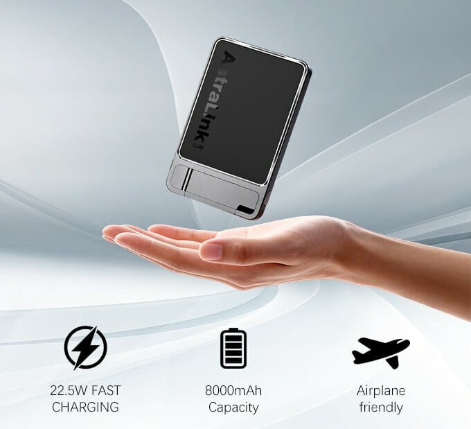 This palm-sized and lighweight versatile tool keeps up with your dynamic lifestyle, with 8000mAh high-density battery to power up phones and other devices on the go. It can deliver two full phone charges and has a 15W MagSafe wireless and 22.5W super-fast wired charging, the latter can take devices from 0 to 50% charged in just 30 minutes.
