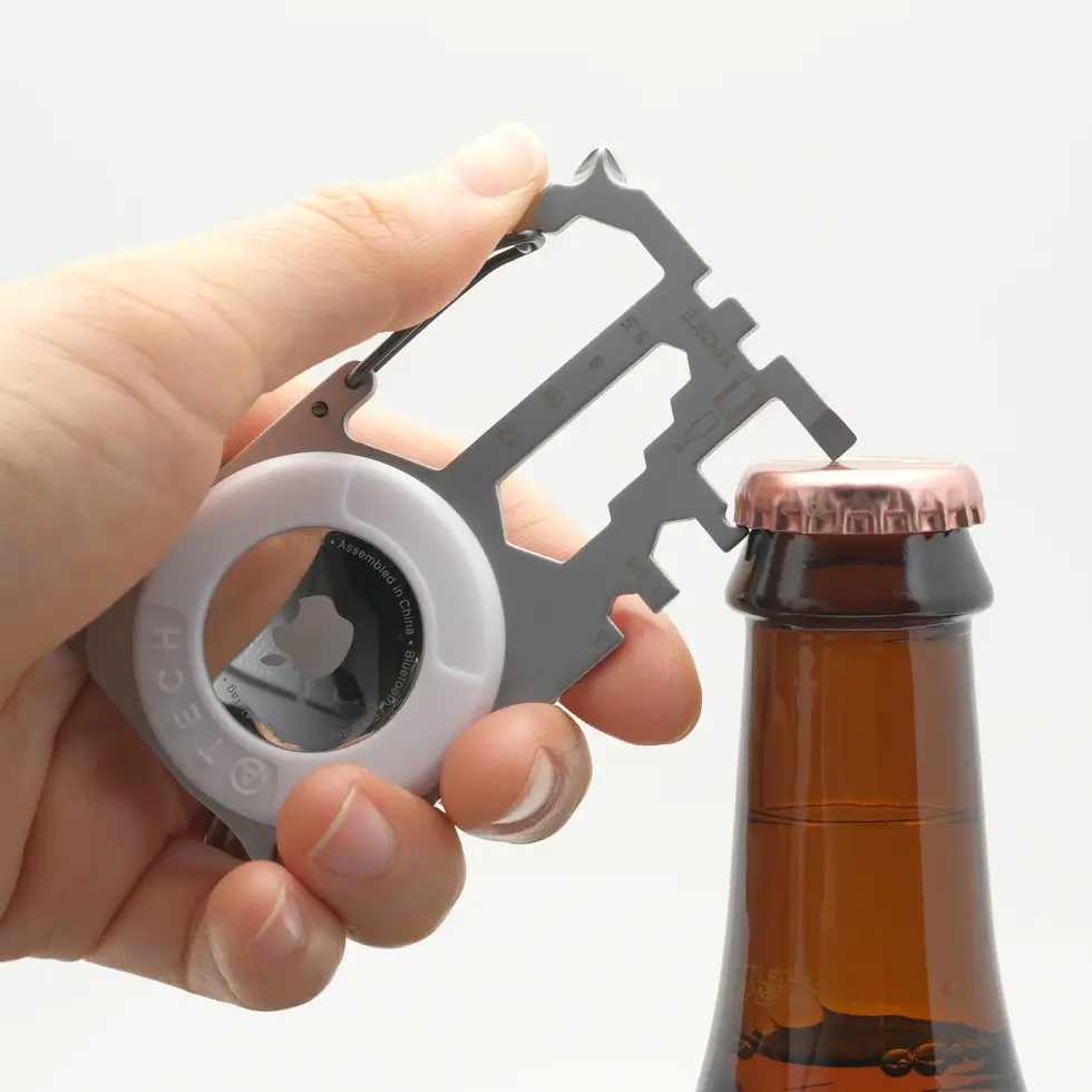 Atech’s AirTag Multi-tool conveniently transforms your Apple AirTag into a handyman or DIY enthusiast’s trusted friend. It’s a versatile protective housing for the tracker that also moonlights as a utility tool.