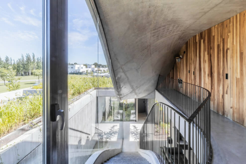 AtelierM designed Nirvana House, in Pilar, BsAs, Argentina, based on the concept of Nirvana, which the studio described as a “state of being that can be achieved in the midst of everyday life, instead of being a distant goal disconnected from reality.” As such, the structure aims to embody this concept by creating a physical space that is connected to everything while at the same time being disconnected from everything.