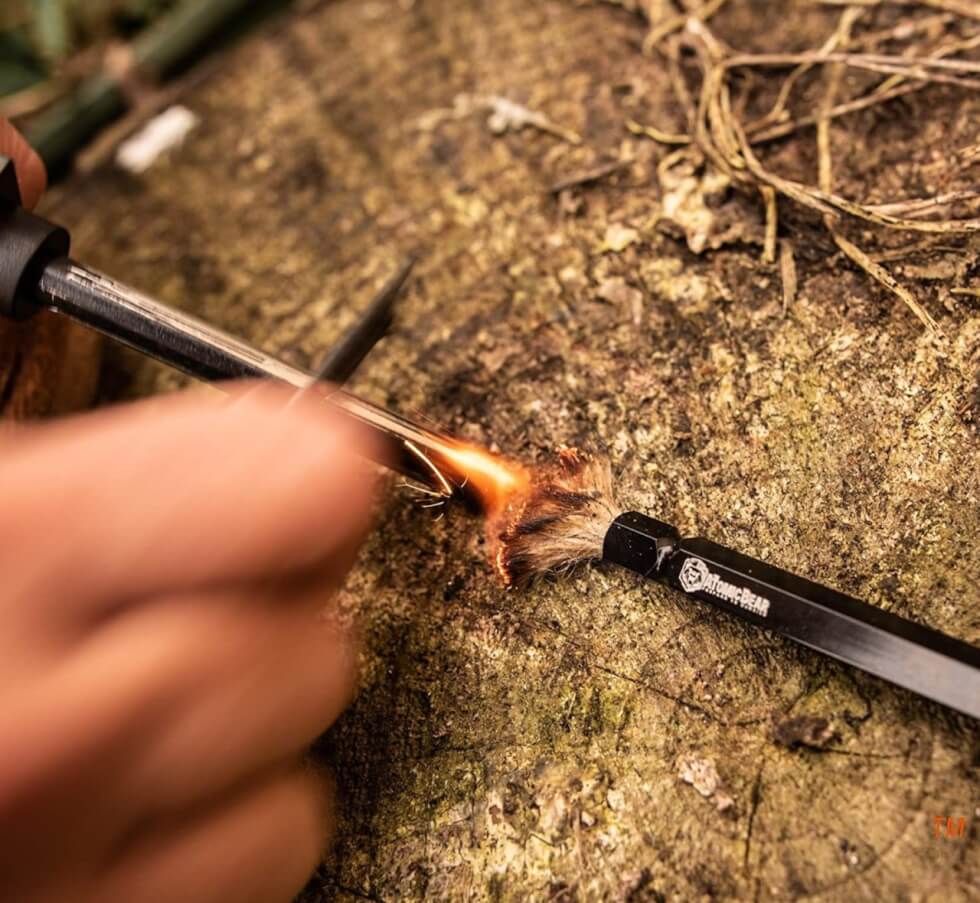 The Atomic Bear Fire Wand saves you time when it comes to setting up your campfire or bonfire. Lighting up is made easy with this wand that uses wax-infused hemp rope that ignites with a single spark.