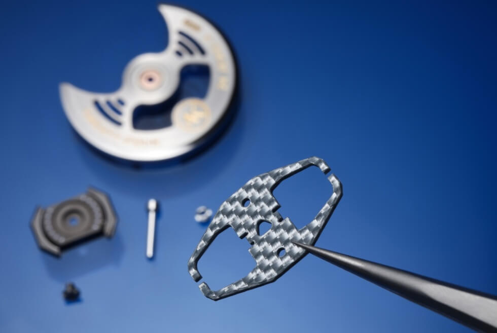 Building on the ATOWAK COBRA’s design, the hour wheel module now features an integrated mortise and tenon structure crafted from composite fiber materials. A single aluminum shaft secures both the hour wheel and swing arm for a minimalist, refined look. This composite approach provides the necessary elasticity to counter deformations and external instabilities, simplifying star wheel installation and ensuring overall stability.
