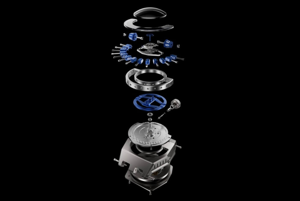 Designed like a mechanical odometer, the system uses drive pins on a central dial to sequentially activate 13 peripheral minute wheels. Every 5 minutes, two adjacent wheels flip their yin-yang faces simultaneously for a precise time display. Dedicated wheel bridges secure each minute wheel, ensuring accurate alignment, reduced transmission load, and enhanced stability.