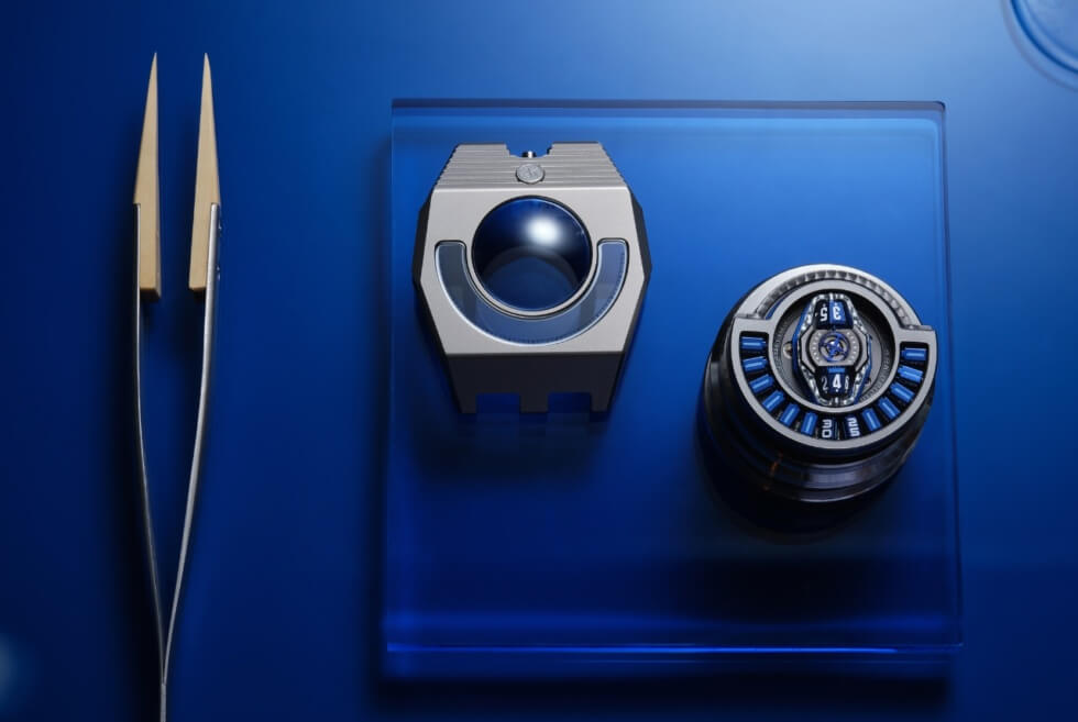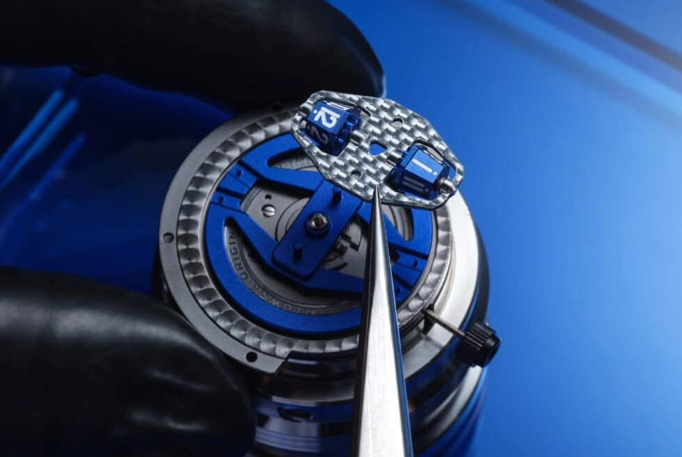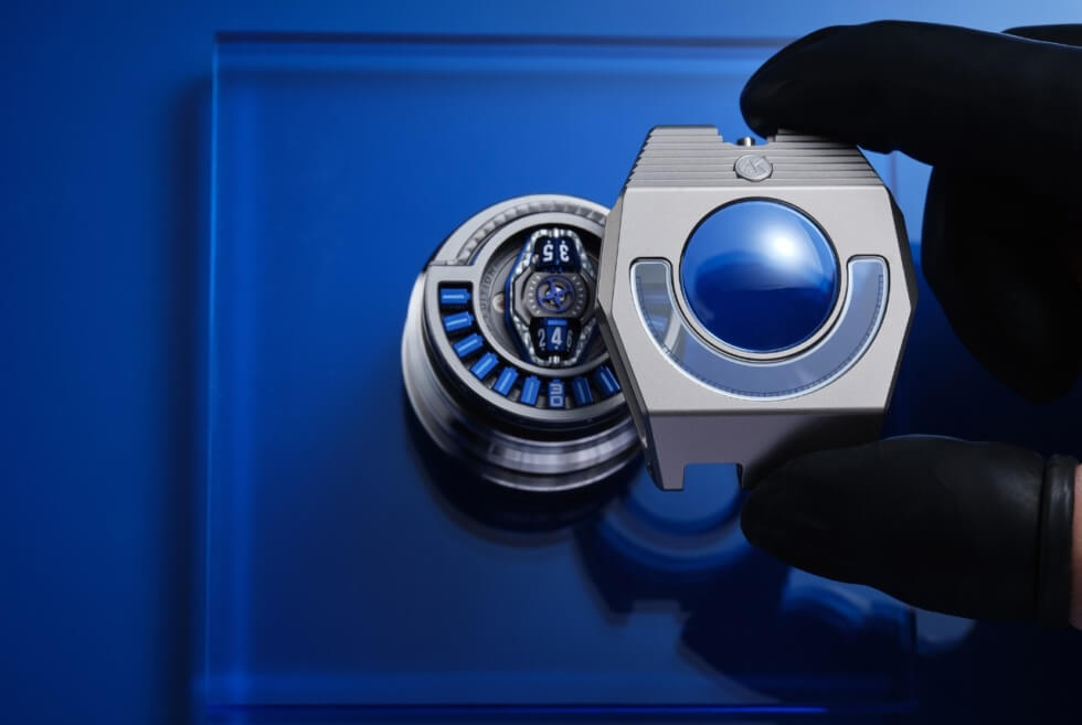 The case is expertly forged from Grade 5 titanium, a material renowned for its lightweight resilience and exceptional durability. Each case undergoes 135 meticulous machining stages to achieve the perfect balance of strength, fluidity, and elegance, just like the manta ray itself. Its double-domed sapphire crystal, with 92% transparency, offers an unobstructed view of the dynamic hexa-prism system. The ultra-thin 2.5mm sapphire glass exhibition case back reveals the movement’s rhythmic pulse. From precision ruby bearings to the fluid motion of carbon arms, every detail transforms traditional timekeeping into an artistic expression of marine elegance.