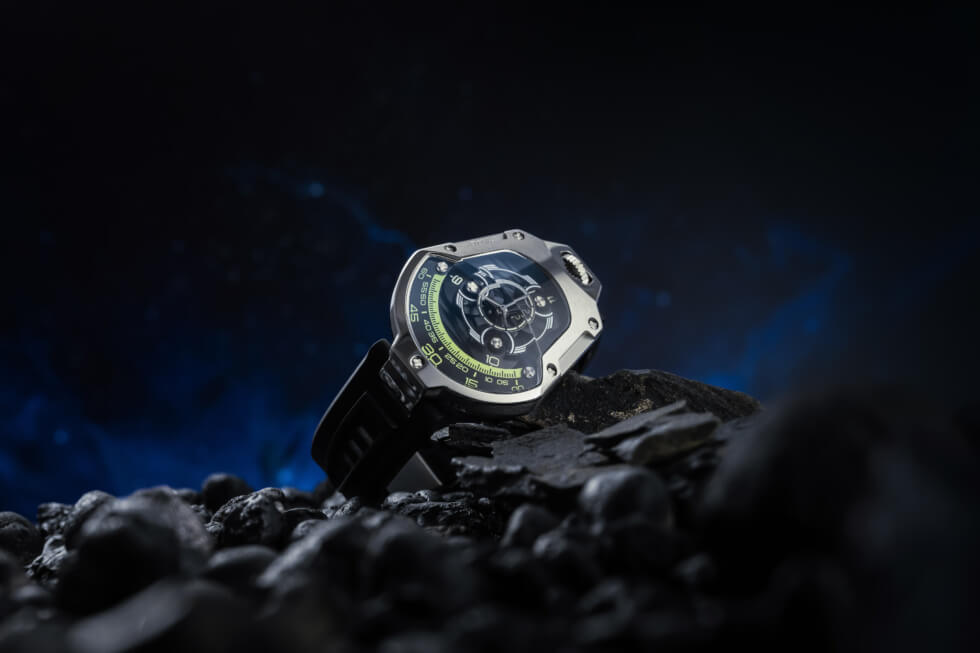 Designed for maximum comfort and functionality, the SPACESHIP’s strap features a quick-release system reminiscent of spaceship quick ejection systems. With a simple twist, the strap can be replaced without the need for tools. The FKM rubber strap is highly resistant to oil, acid corrosion, oxidation, and atmospheric aging, making it an essential feature for any adventurous journey.
