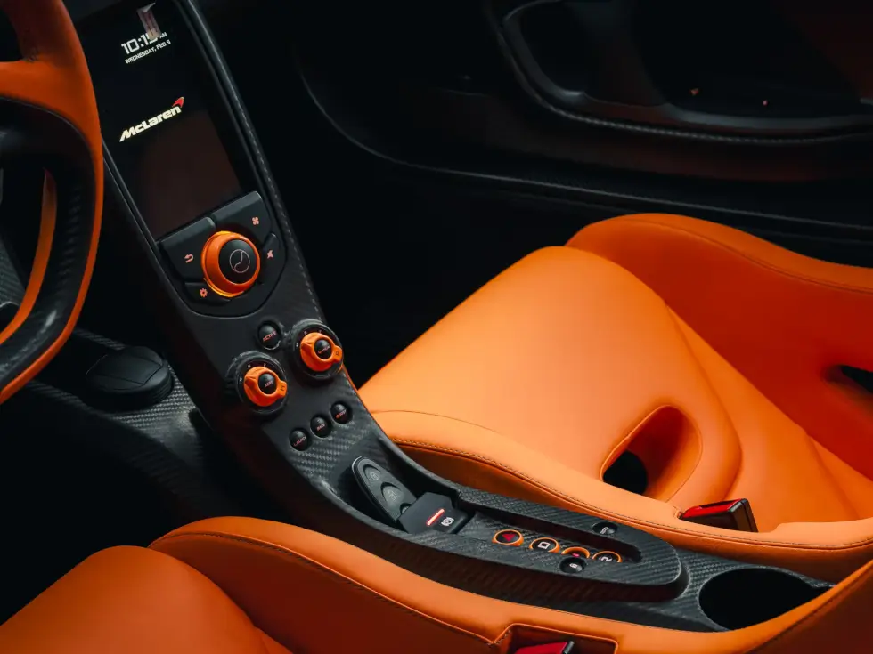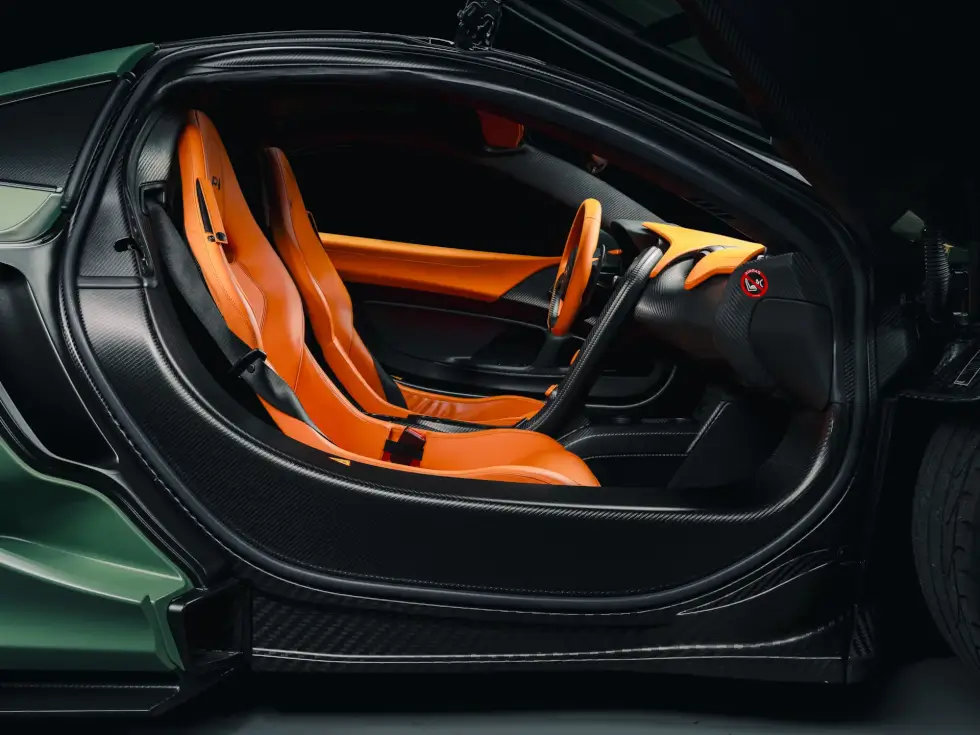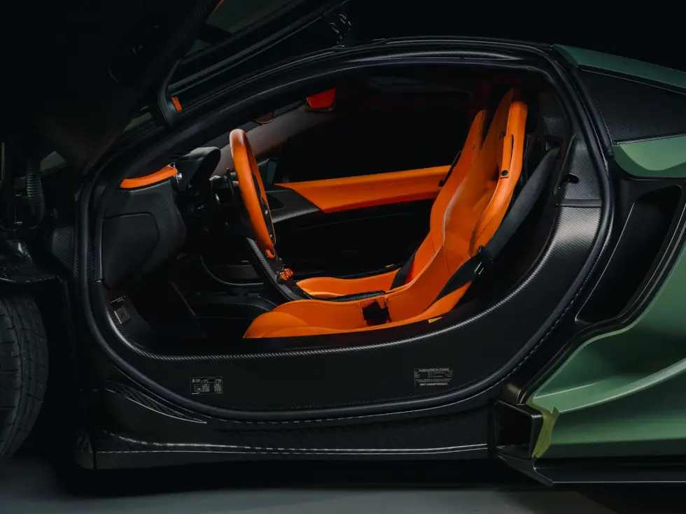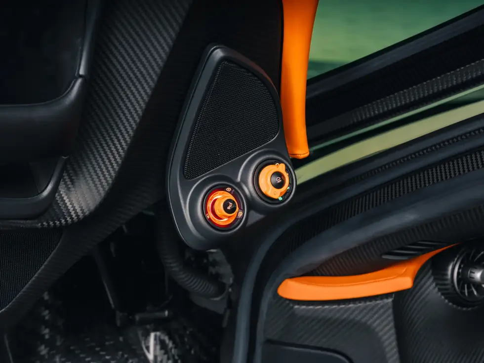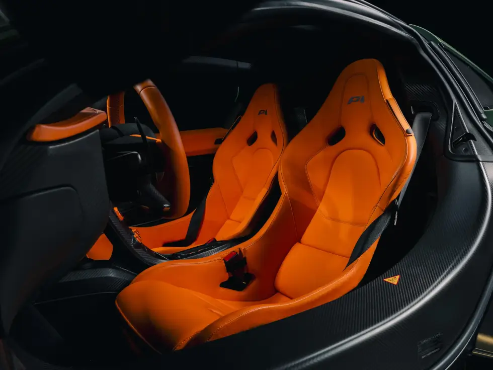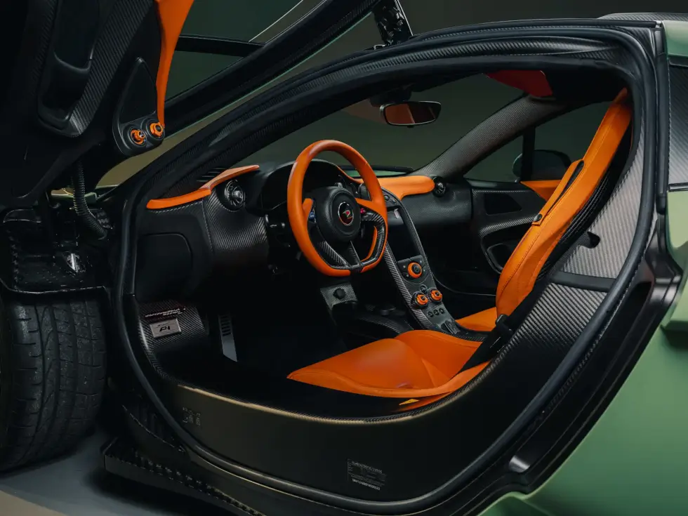 Contrasting the sleek verdant exterior are the badges, brake calipers, wheel caps, rear spoiler hydraulic rams, interior upholstery, and other elements in McLaren Orange. RM Sotheby’s states “both its design and performance are still as electrifying today as they were when they were unveiled.” As of our writing, the 2015 McLaren P1 is still up for grabs.