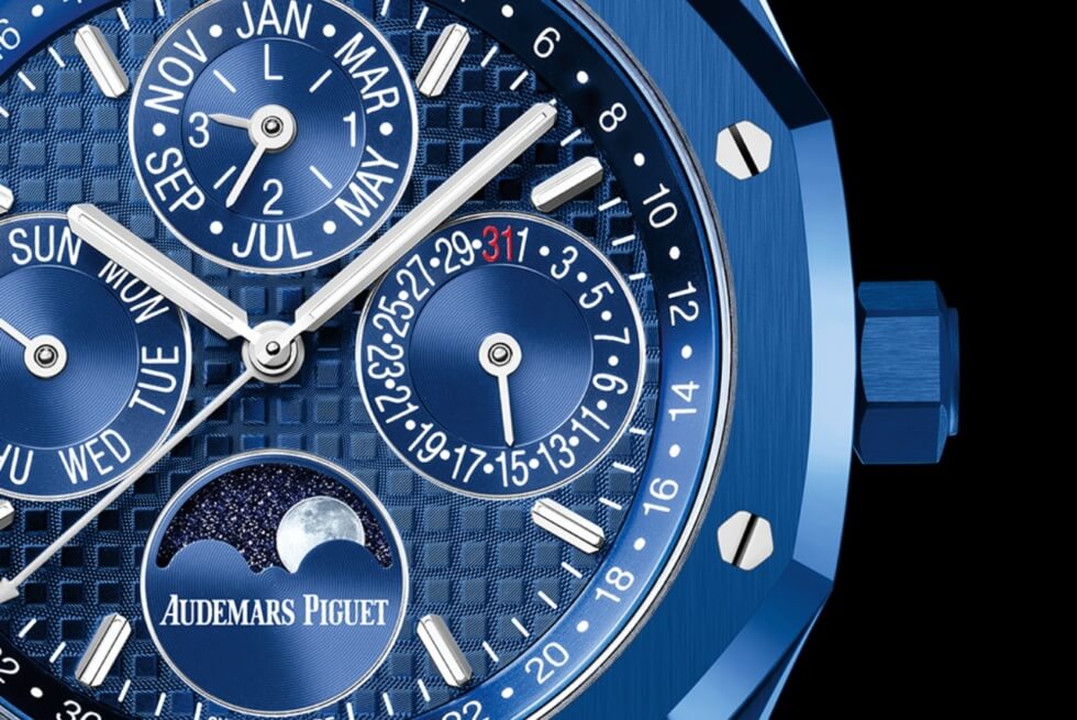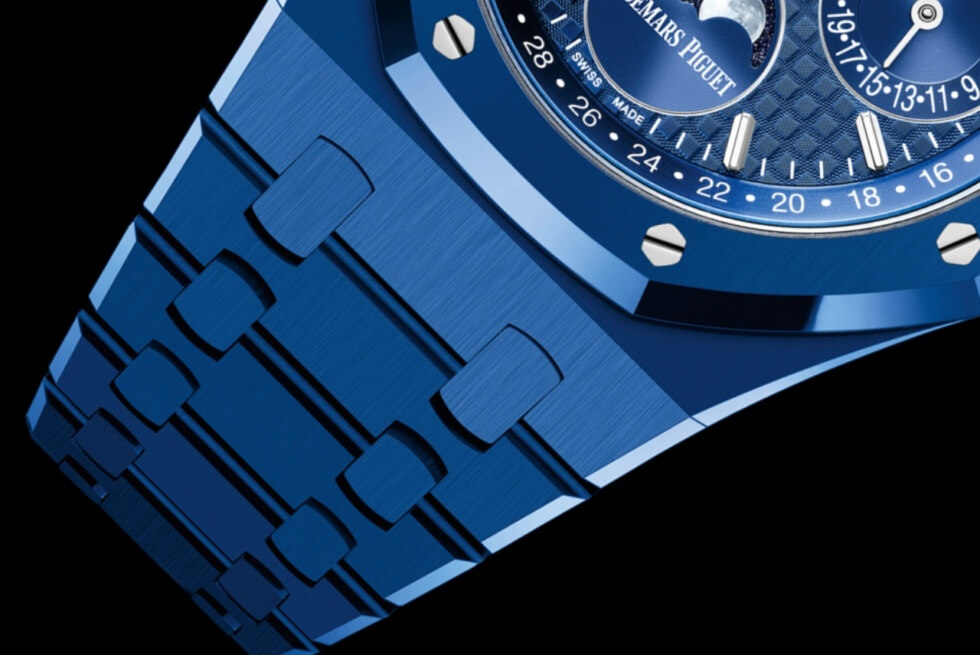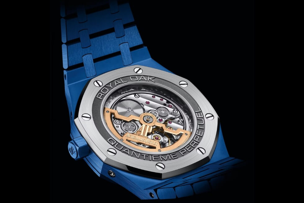 In 2019, AP also released a white ceramic version of the Royal Oak Perpetual Calendar. Comparing it with the latest blue ceramic variant, we can say the shade makes it easier to see the outlines of its components clearly. The titanium exhibition case back, meanwhile, contrasts the tonal ensemble.