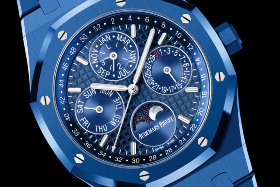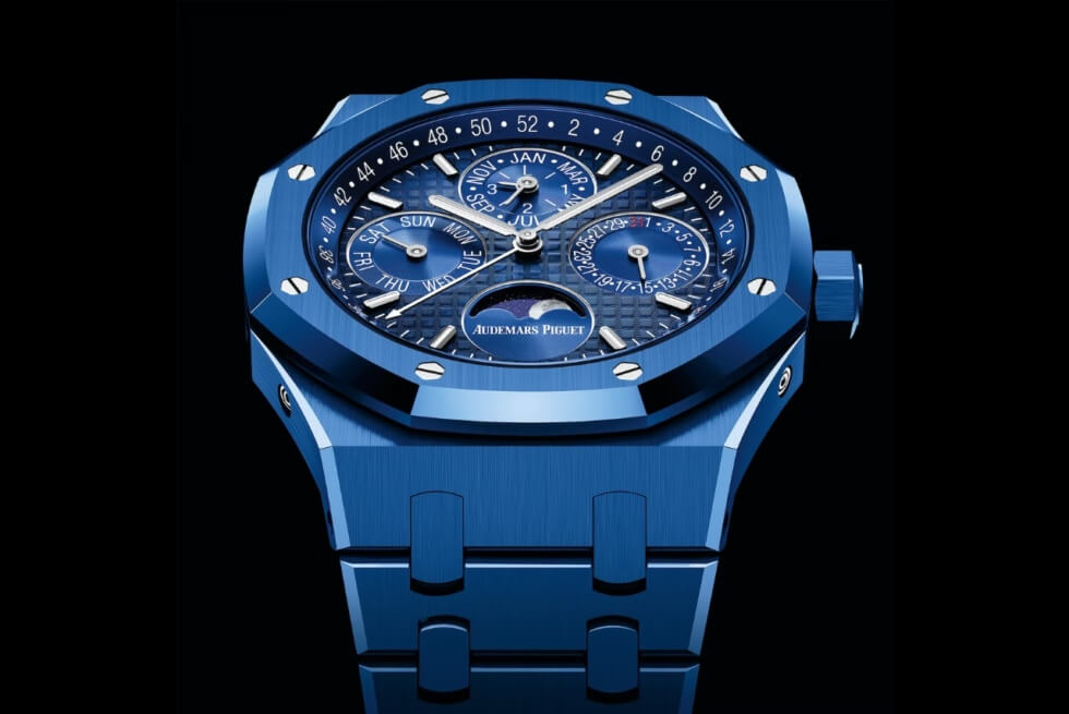 The color blue is what many associates with sadness and melancholy, but it also exudes tranquility. When it comes to watches, you typically see it on embellishments or maybe as accents on various elements. Most watchmakers often pair with it other tones, but Audemars Piguet goes all out with the Royal Oak Perpetual Calendar.