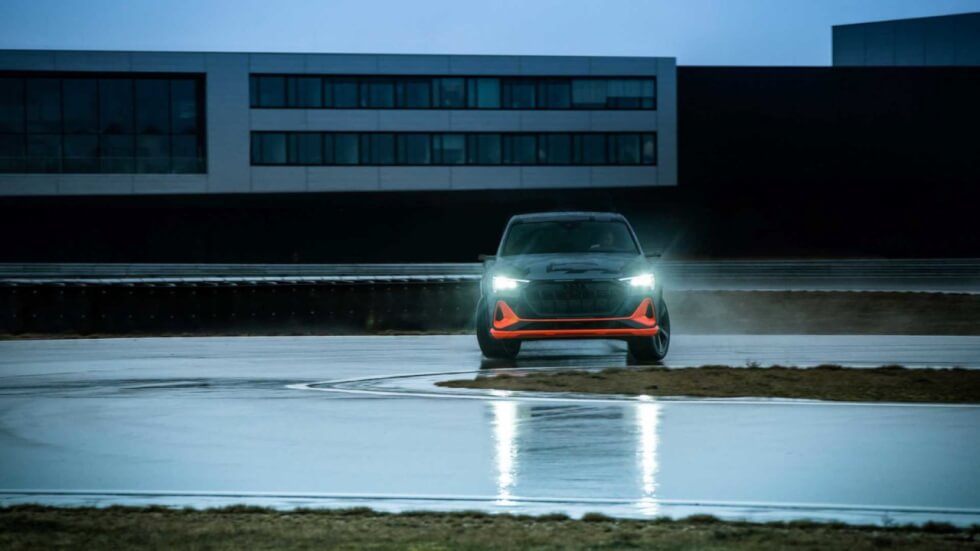 This apparently comes from the new electric drivetrain layout. Audi is arming the e-tron S with an additional electric motor to its rear axle. Therefore, we are looking at a triple setup with torque vectoring technology.