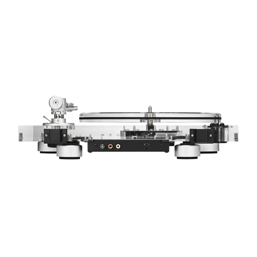 This SKU is almost completely transparent, with some parts and electronic components as the only exceptions. The Japanese company states that the “fully manual belt-drive turntable combines contemporary aesthetics with analog expertise while remaining incredibly easy to set up and use.”