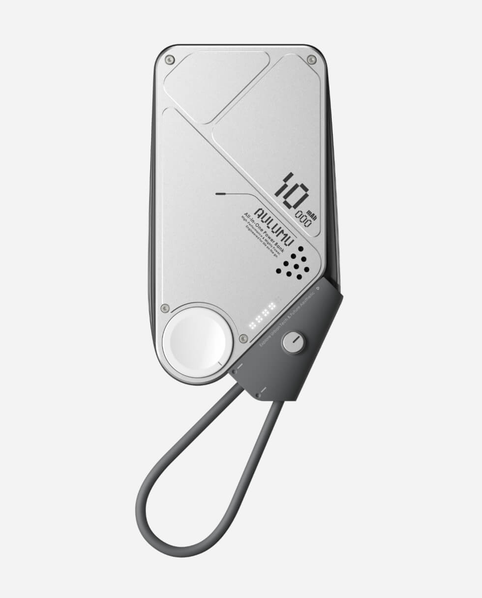 Power your mobile devices on the go with the stylish Aulumu M10 Power Bank. It packs a battery capacity of 10,000 mAh in a sleek and industrial asymmetrical geometric design crafted from textured anodized aluminum.