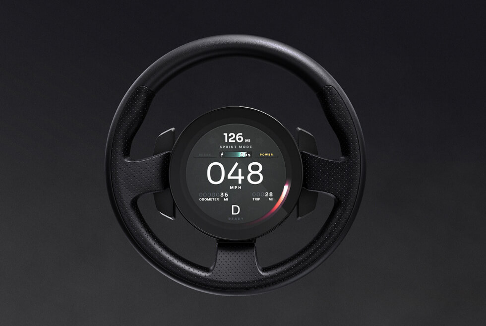 You won’t find the instrument cluster on the dashboard because it’s integrated into the steering wheel. The human-machine interface 9HMI) of the status screen runs on Android Automotive OS and is developed by Conjure. Potenza is supplying the electric drivetrain and batteries.