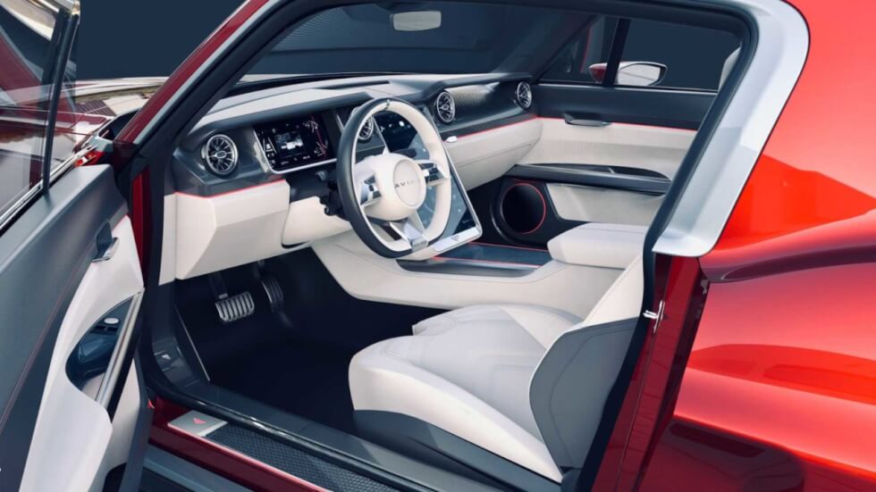 Despite the modern specifications, Aviar is choosing to keep its retro elements, which many will love. The interior shows white leather upholstery on the seats, door panel dash and gives contrast to the grey elements. The R67 is still under development but should be available in showrooms by 2021.