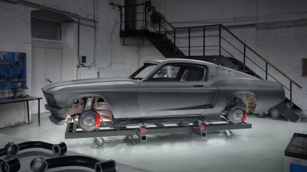 The last statement might seem off to you, but there’s a perfectly good reason behind it. You see, instead of gutting out the actual muscle car, Aviar is reworking an entirely different platform. The donor vehicle it starts off with is a Tesla Model S and builds around it. We’re seeing generous amounts of carbon fiber for the body, which it is crafting in the shape of a 1967 Mustang Fastback.
