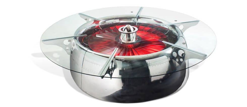 The jet’s four engines have inspired the design for this outstanding piece of aviation-inspired furniture, which is built out of a General Electric nacelle. Bordering between art and industrial furniture, the Boeing 747 Jumbo Jet Conference Table has the potential to turn any contemporary office into a stunning, creativity-inducing meeting room.