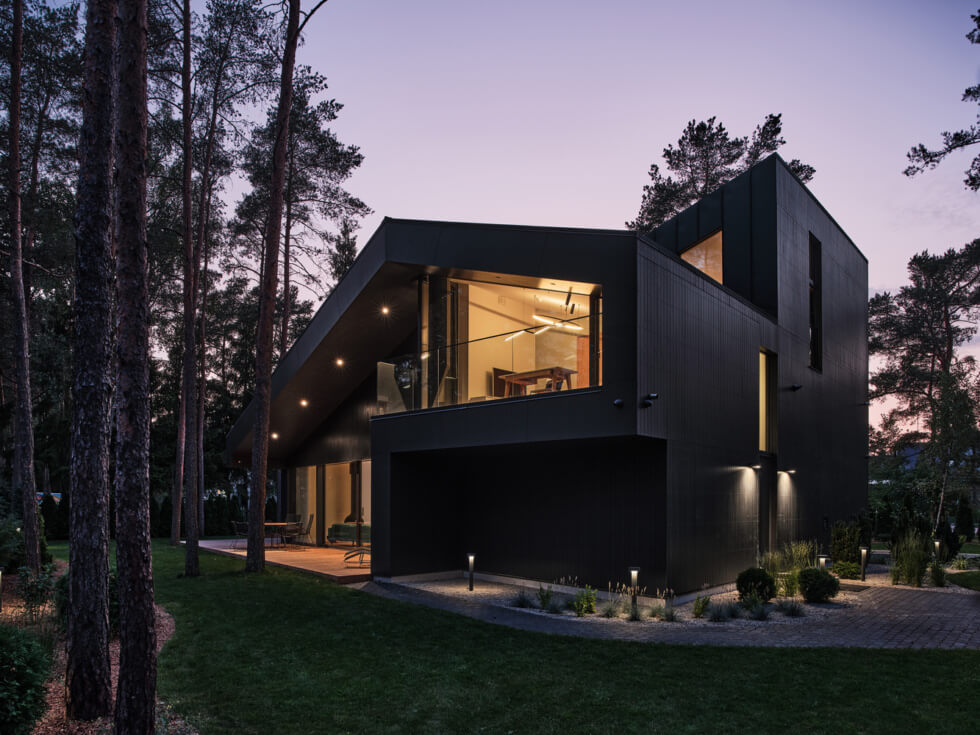 AZIA Arhitektid built the Bike House for a family of bike lovers. Located in Nõmme district, outside of the city of Tallinn, Estonia, the residential property boasts 315 m² of space and an outdoor concept. It stands out with its black color facade among tall pine trees and lush greenery.