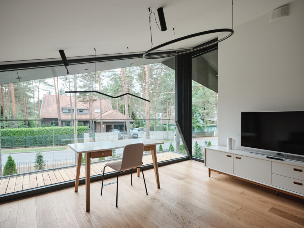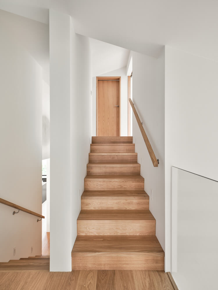 Moreover, there’s the basement level where the compulsory sauna and storage rooms are located. Then the main level houses the living area where it connects to a terrace and a patch of greenery that overlooks the street below. The master bedroom that links toward the backyard occupies the rest of the main level.