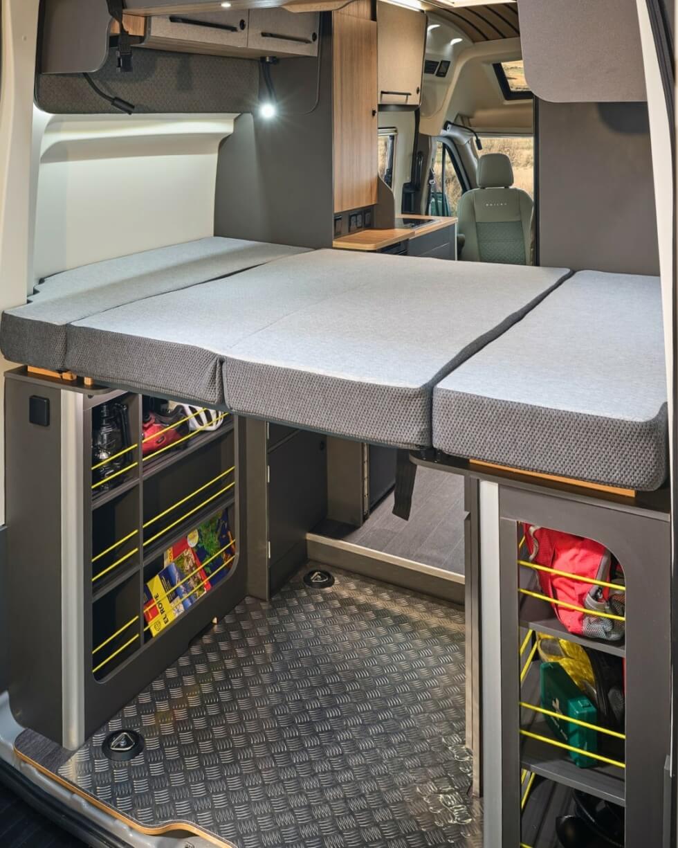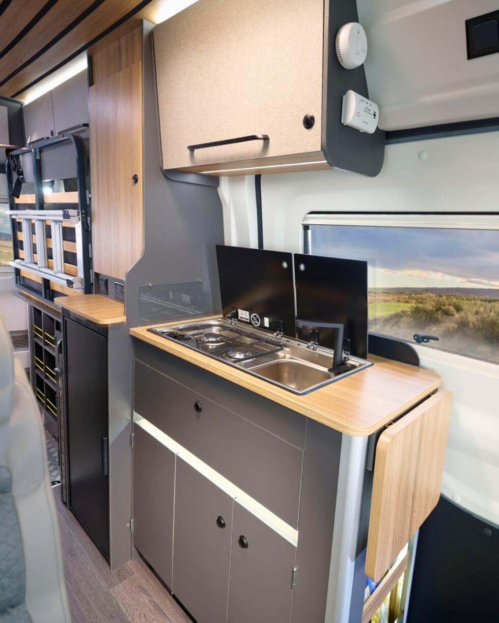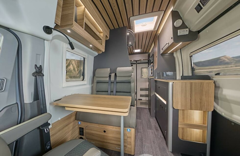 So far, the series only has one model to offer. Nonetheless, it’s overflowing with all the bells and whistles to make your off-grid stays pleasant. The donor platform for this build is a Ford “Grey Matter” Transit, which welcomes some choice modifications.