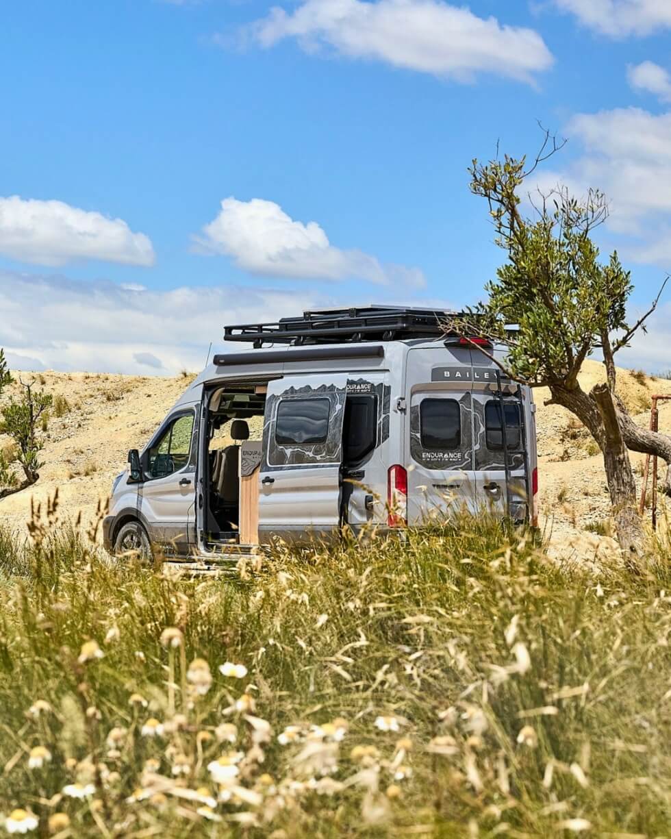 Mount a rooftop tent, install awnings on each side, or illuminate your surroundings with auxiliary lighting. The standard configuration can sleep up to four. It comes with a compact bathroom, a kitchenette, a dinette, and a convertible sleeping area. The Endurance is now available to order.