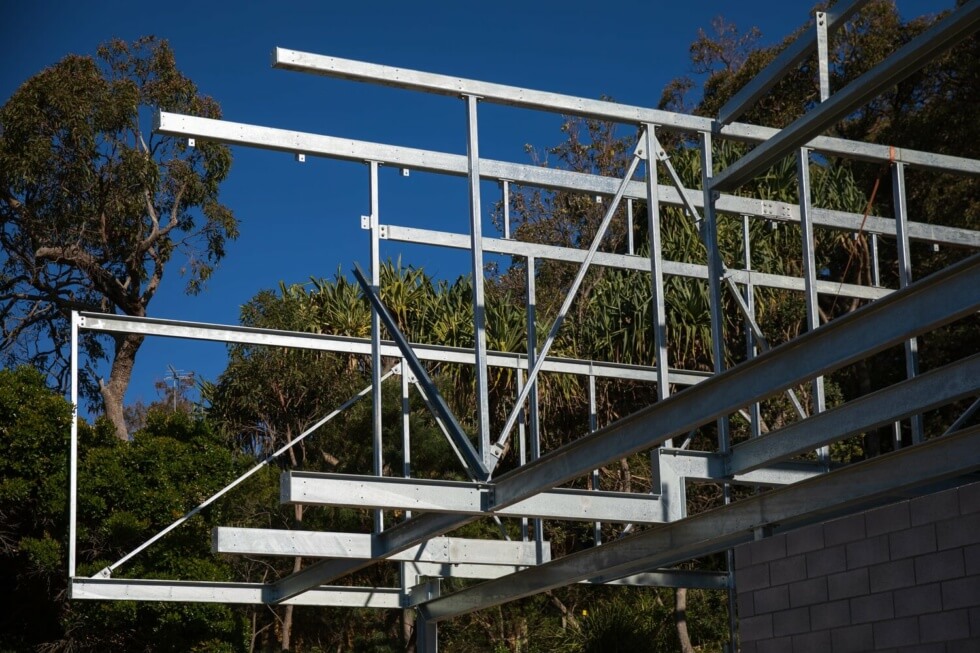 The island location of the house called for the use of a pre-manufactured structural steel skeleton in its construction. This was then transported on-site for installation and for the structures to be bolted together. Builders, engineers, and Refresh Design had to diligently coordinate with each other on the location of trusses within walls to minimize the structural steel member sizes.