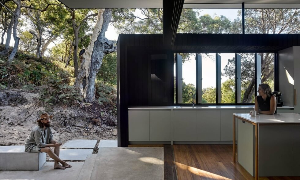 As for its interior finishing, the Baker Boys Beach House uses a mixture of wood, tiles, and concrete to complement the bushland topography. Meanwhile, glass windows provide natural lighting and ventilation.