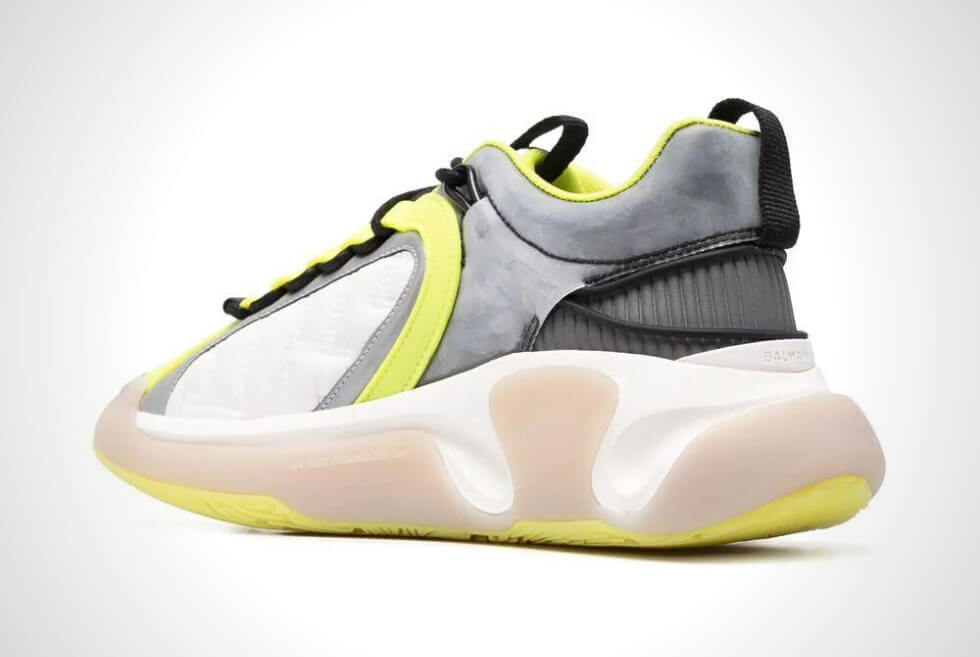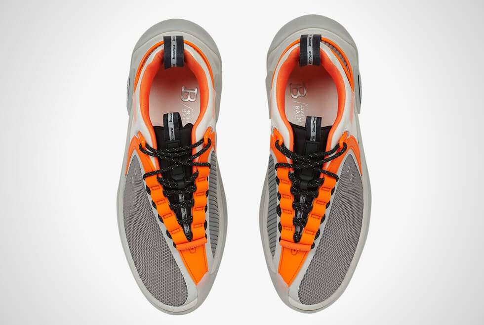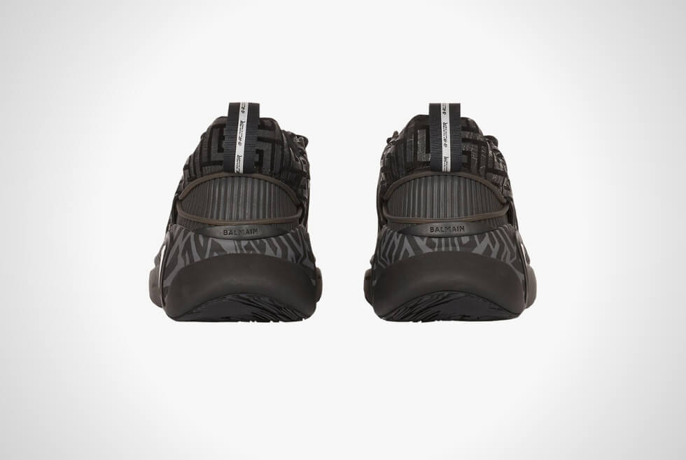 Two pull tabs – one on the tongue and the other on the heel collar – lets you slip it on easily. To secure it properly before a run, Balmain goes for an asymmetrical lacing system. The closure curves inward as it approaches the big toe. Finally, the B-runner features a branding badge on the lateral side of the midsole.