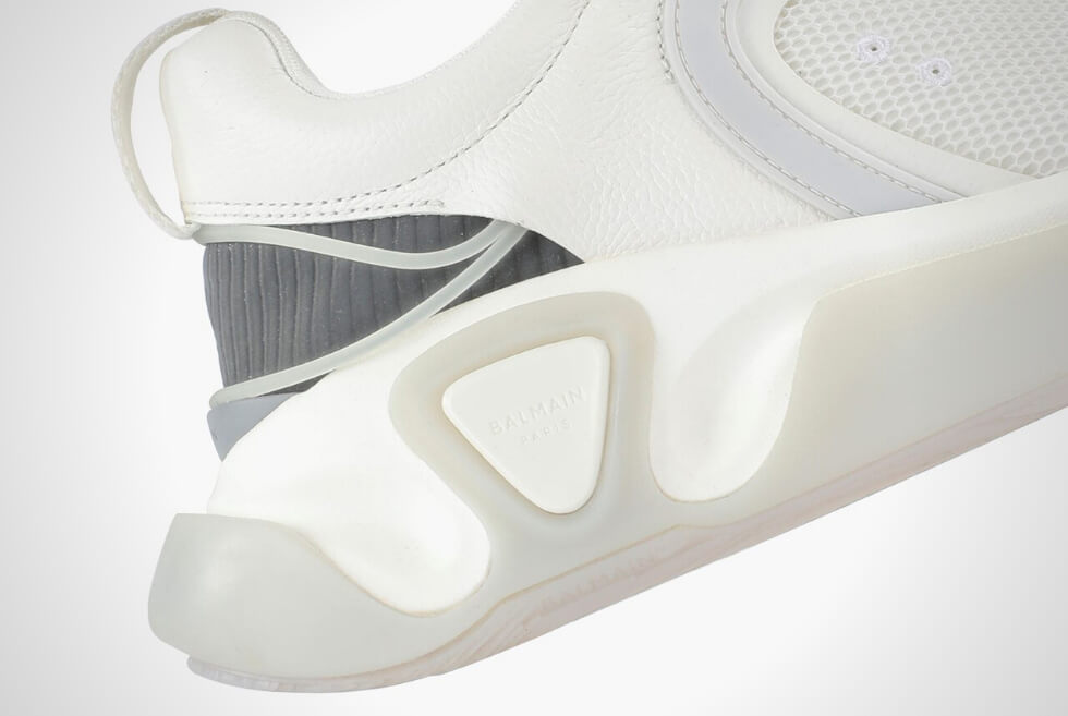 Another interesting aspect of the B-Runner is how Balmain plays around with textures. You start off with a typical mesh surface that gradually flows into a leather panel with eyestays. What follows is a transition into a translucent layer and ends with a pleated heel section.