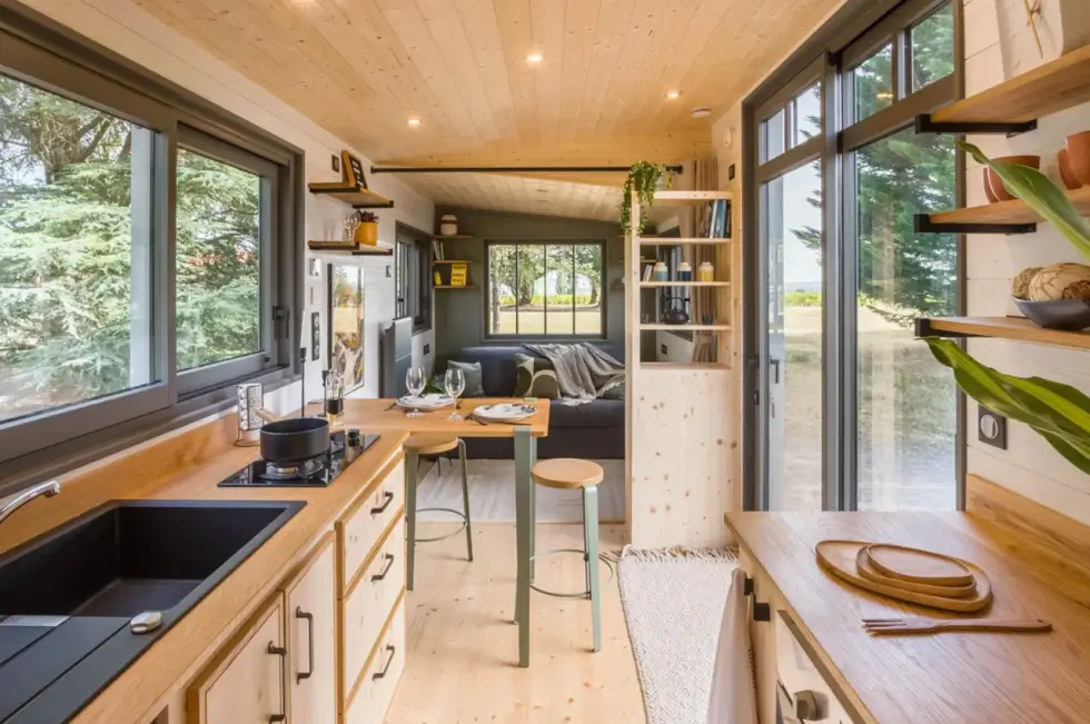 Tiny house build French company Baluchon managed to fit an entire family home on one level measuring 22 feet long called the Eucalyptus. Despite its small size, it offers the modern comforts of home including a fully-functional kitchen, dining and sleeping spaces, and more.