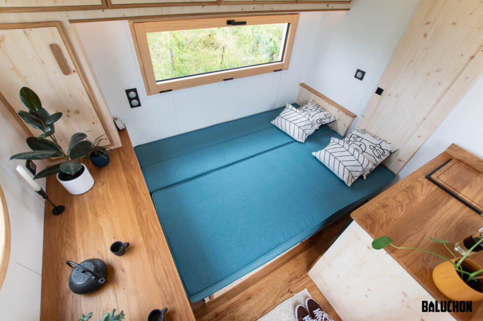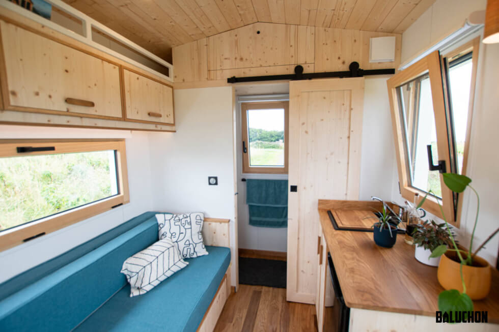 However, we can probably learn a lot about the guy courtesy of the blueprint and what’s inside these four walls. As with most of their works, Baluchon uses a trailer as the solid foundation. Meanwhile, the framework is class 2 spruce with the flooring in solid oiled oak. As for the exterior, they clad the facade in red cedar.