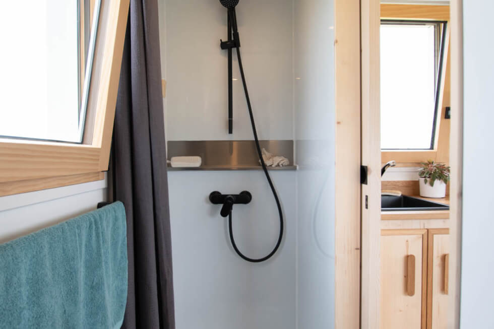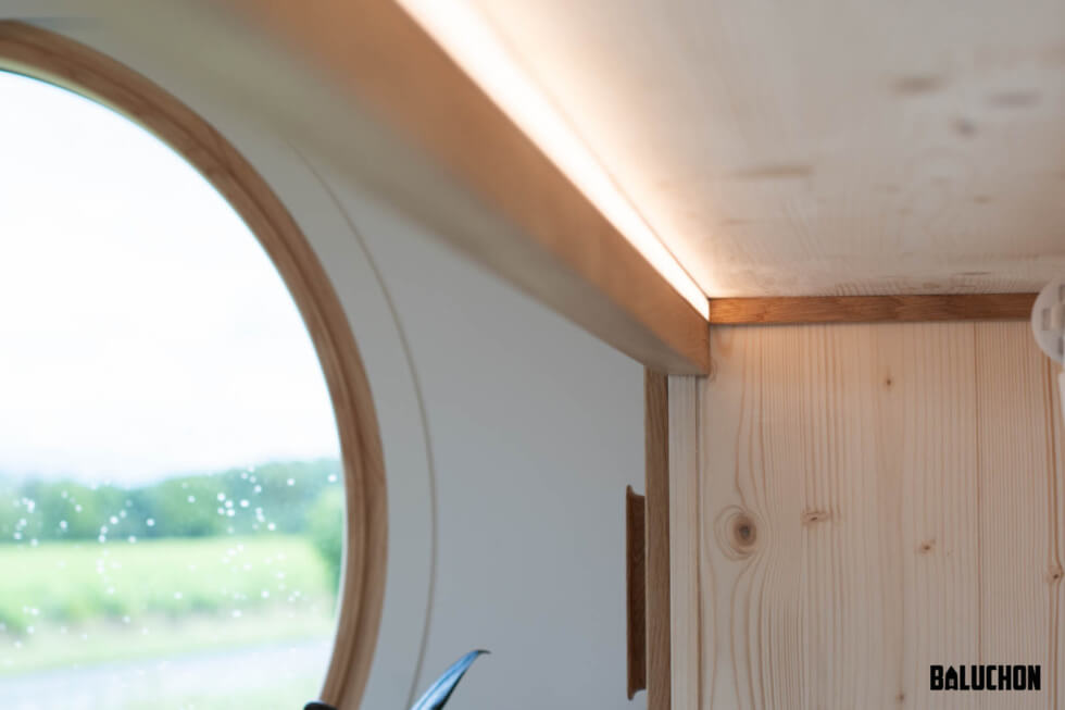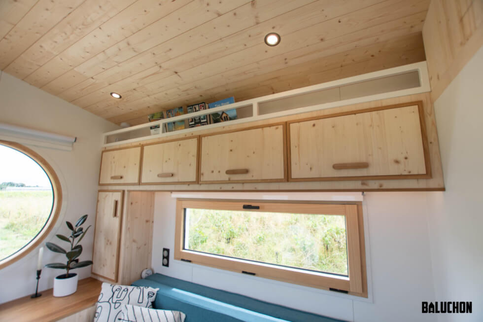 Elsewhere, the interior walls are poplar plywood in white paint and spruce paneling covers the ceiling. For insulation, the Baluchon applies a combination of hemp, cotton, and linen. Sparing no expense for reliability, they’re sourcing all hardware from Würth. A Lunos double-flow CMV and air extractor handle the ventilation.