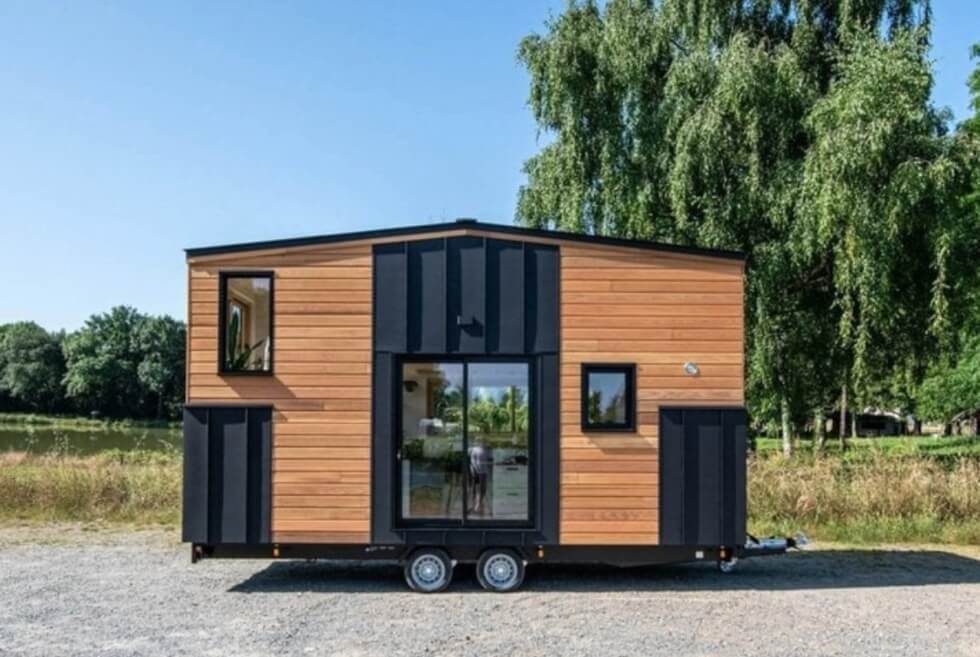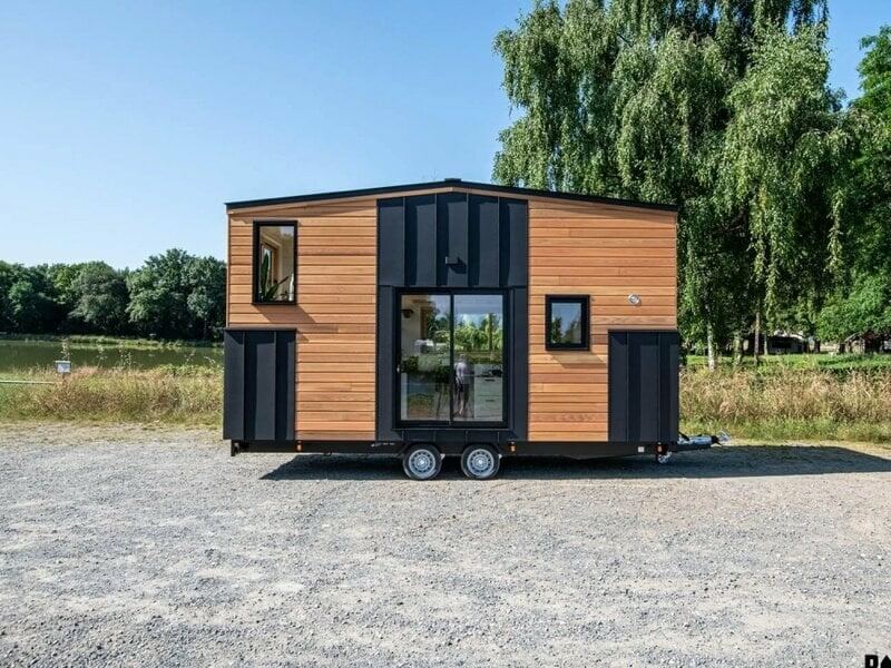 But its exterior alone already looks warm and inviting with its play on contrasting colors. The facade perfectly balances light natural wood with dark panels for a contemporary modern style. Set on a double-axle trailer, the house spans roughly 6m (20 ft) long.