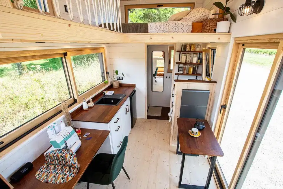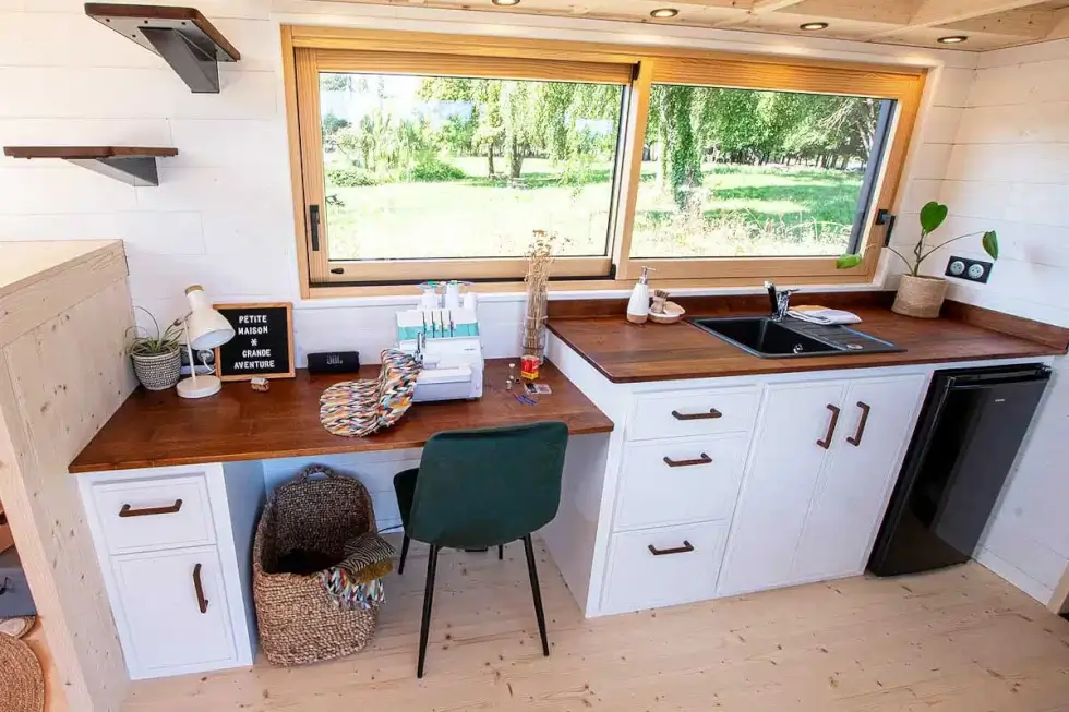 Nouvelle Dans from French tiny house builder Baluchon is a contemporary and fully functional house/sewing studio owned by Nadège. The house integrates her passion for sewing into its design, providing a specific space for her to indulge in the craft.