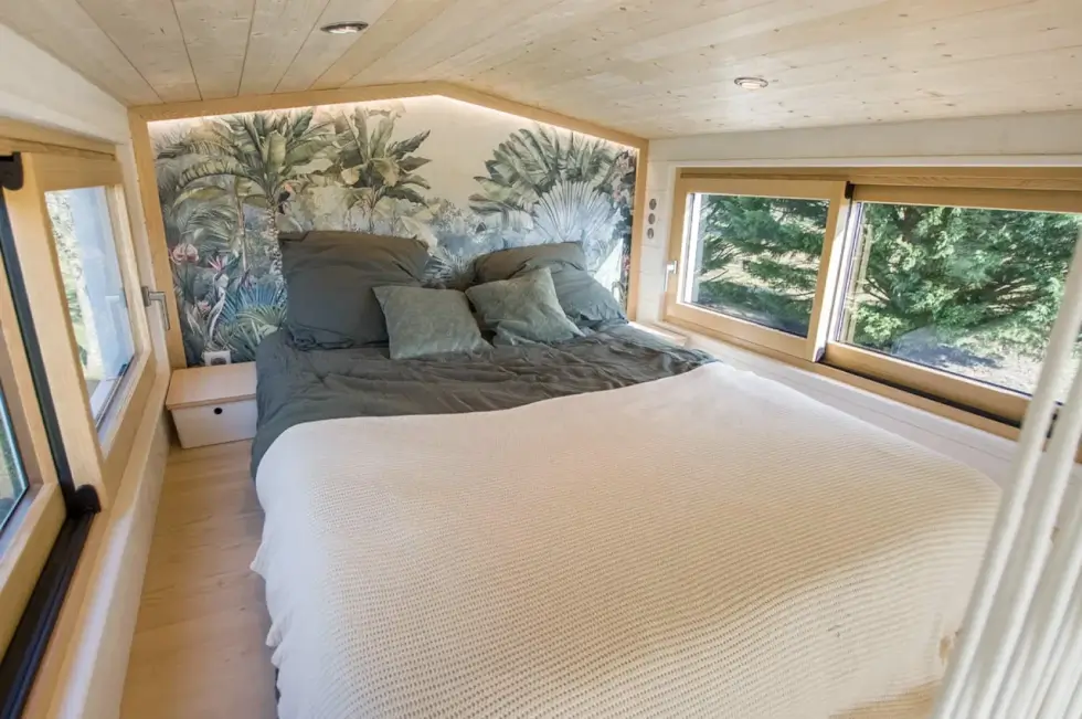 Baluchon offers a cozy space in the six-meter long tiny home called Bois Perdus, which is French for “Lost Woods.” This house on wheels offers a flexible and free-flowing interior layout with large glazed openings that brighten the space, making it look and feel spacious.