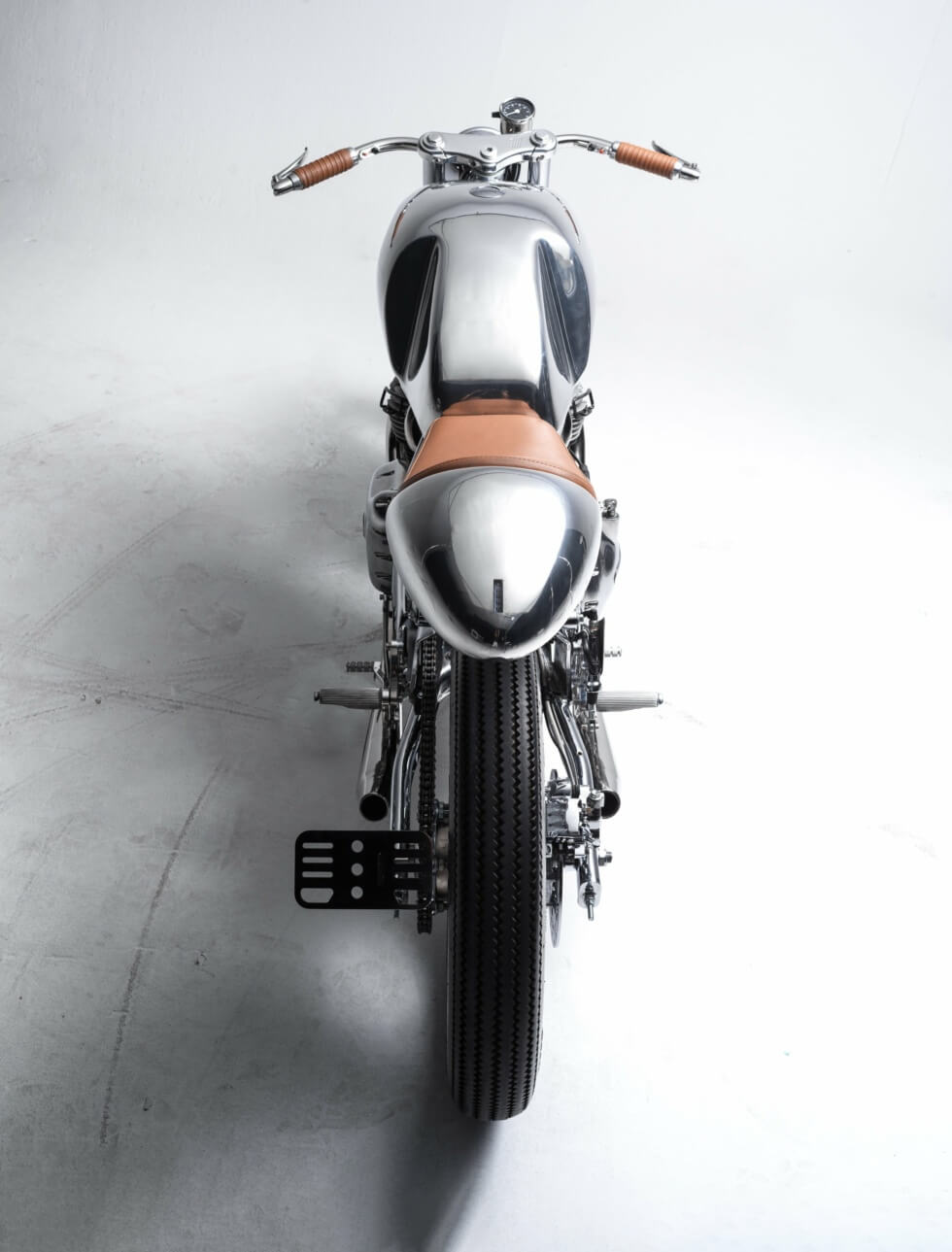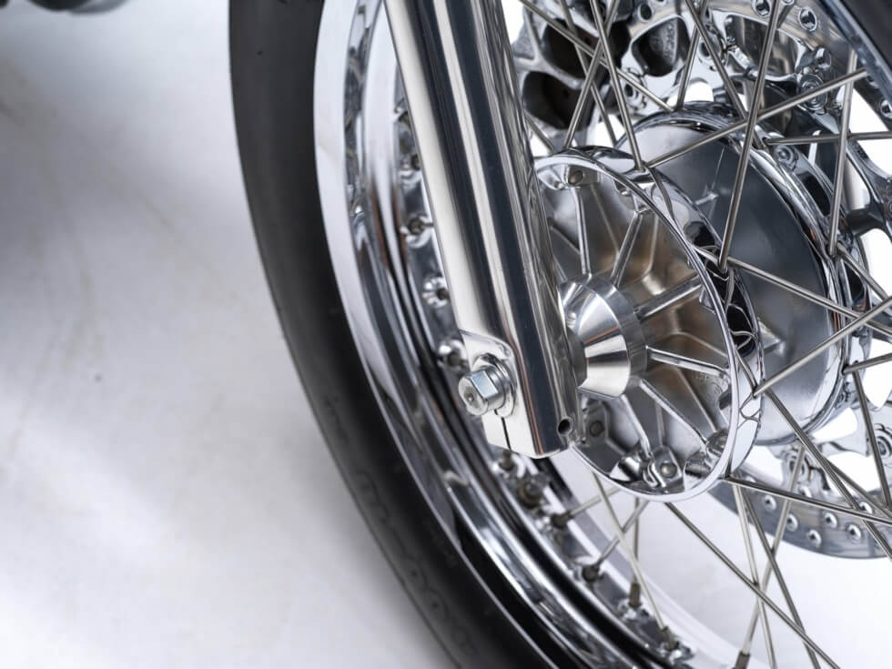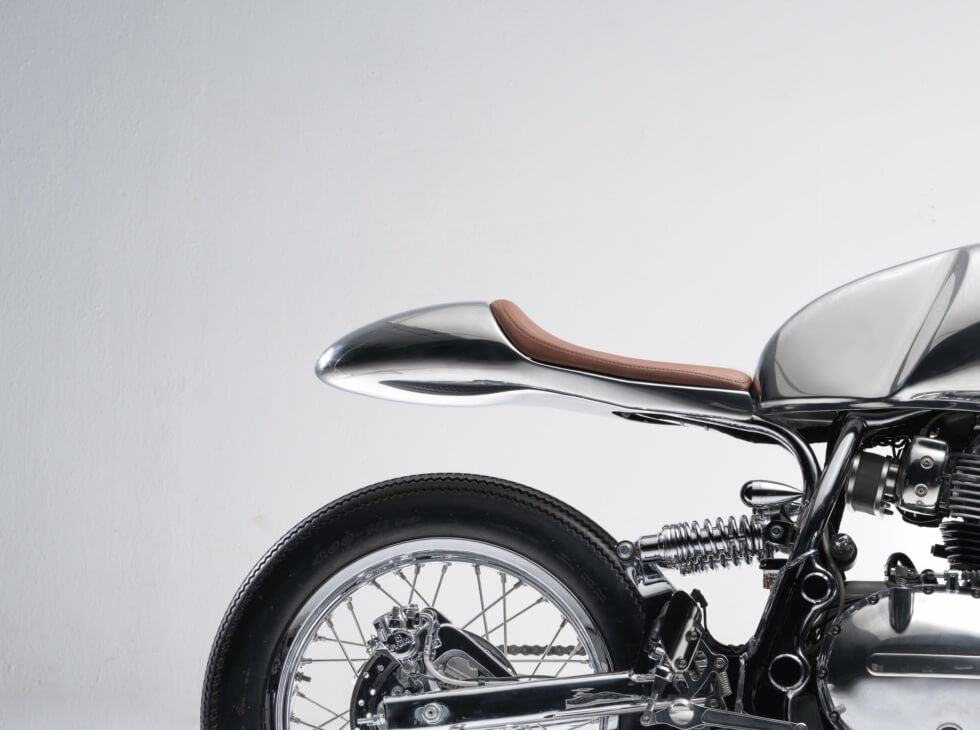 Since its name implies a machine inspired by the legendary king of Britain, the Arthur II shines like a polished suit of armor. Apart from the brown leather of its handlebar wraps and saddle, everything else sparkles silver courtesy of the polished metal. Bandit9 details all of the components it crafted for the Arthur II.