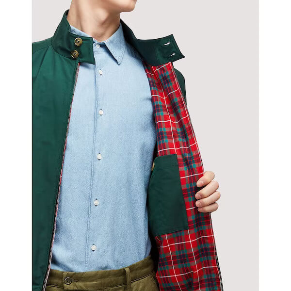 The Baracuta G9 Jacket features a classic two-button Baracuta collar in case you need to keep the wind out to stay warm. Meanwhile, a durable double zipper in the middle lets you adjust it to a comfortable fit.