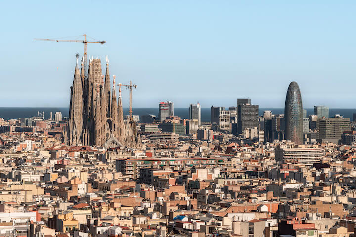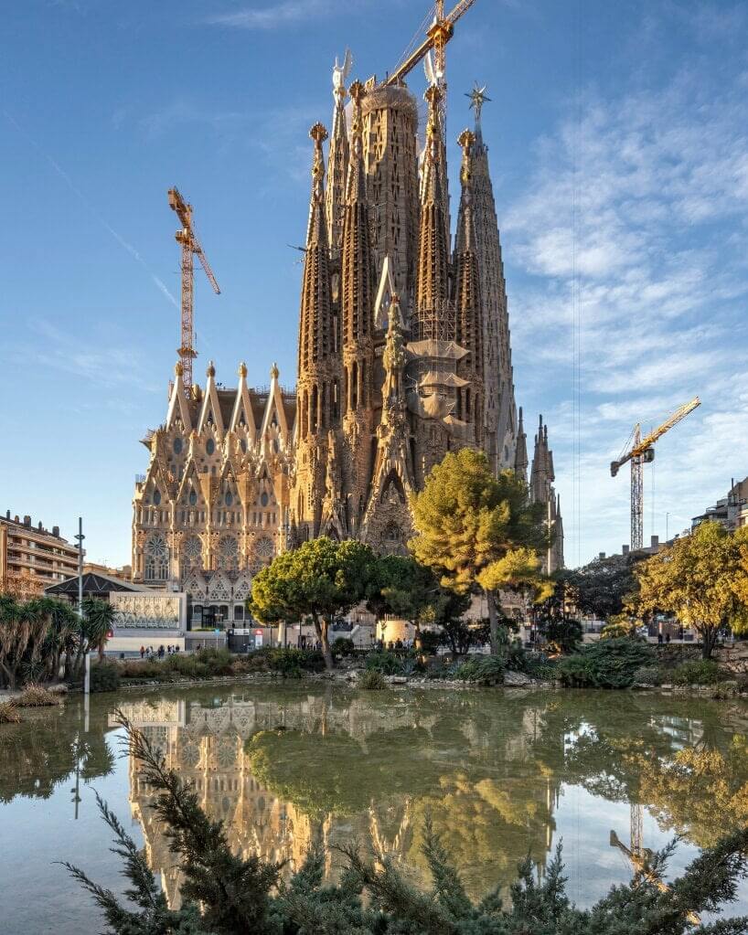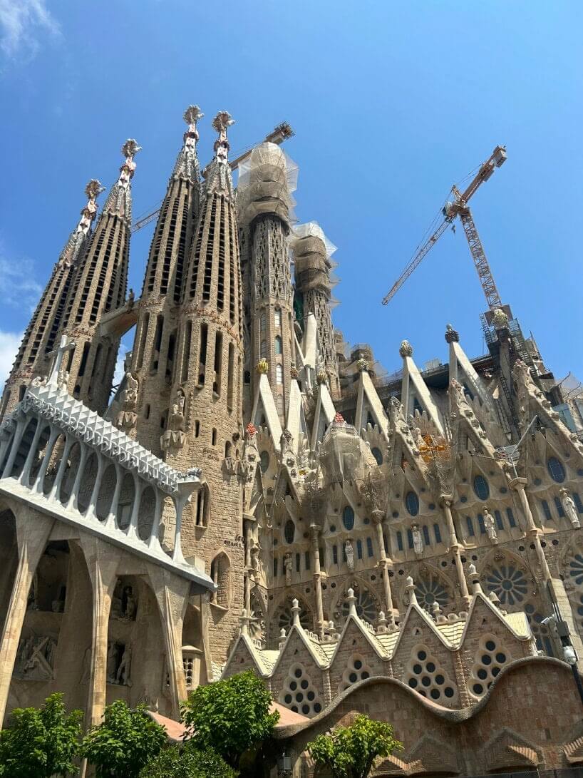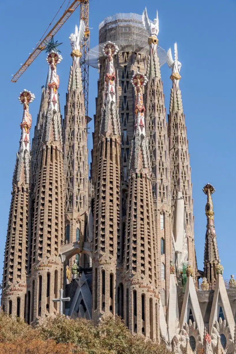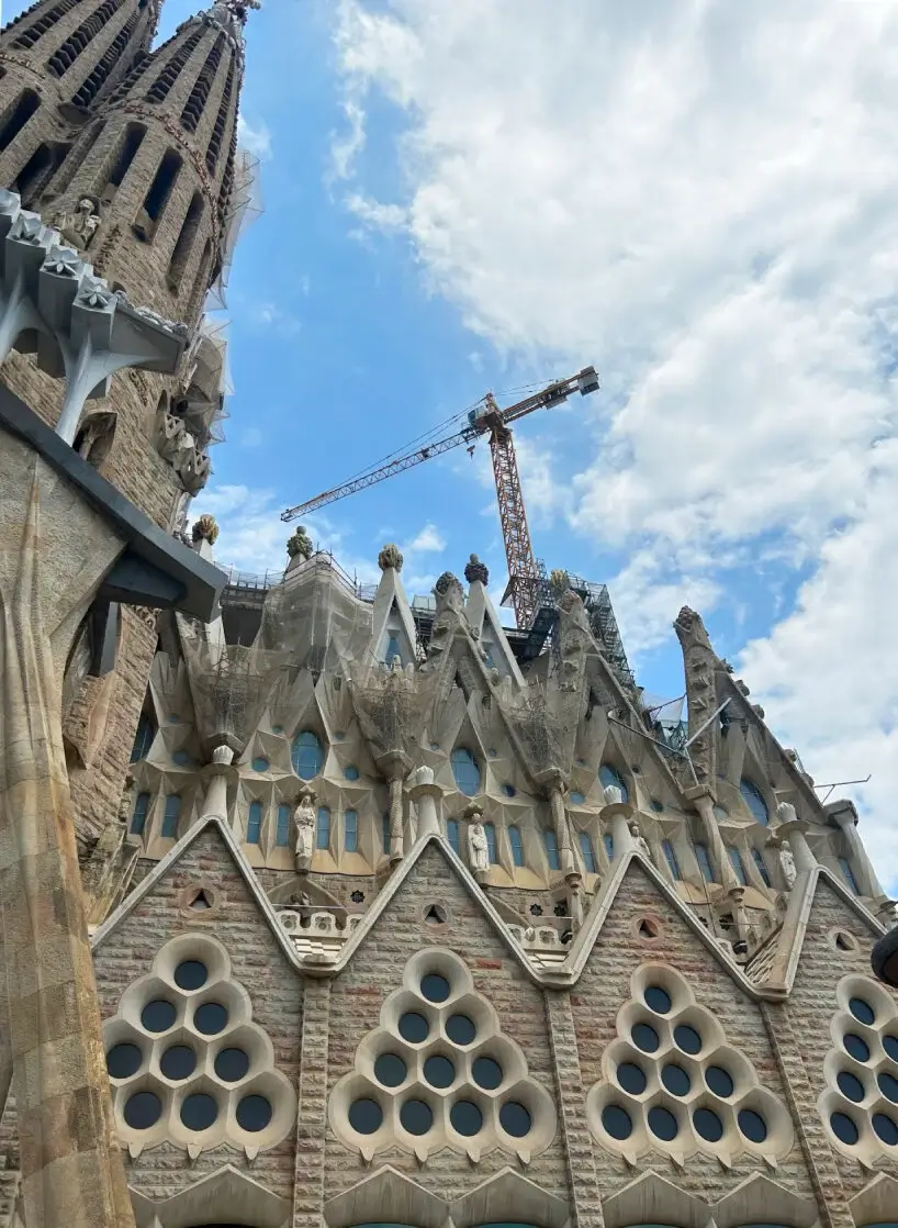 The Sagrada Familia is notable for its tactile organic form, featuring bold flying buttresses and twisted towers. It gives an unexpectedly magnificent sight as at looms over its urban setting.