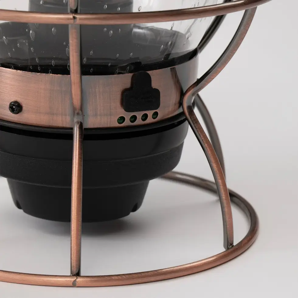 This vintage-inspired torch is an homage to the iconic Union Pacific lanterns of the 1920s. The seeded glass globe and copper accents give it an artistic silhouette, beautiful enough to display in your home when it’s not illuminating dark areas.